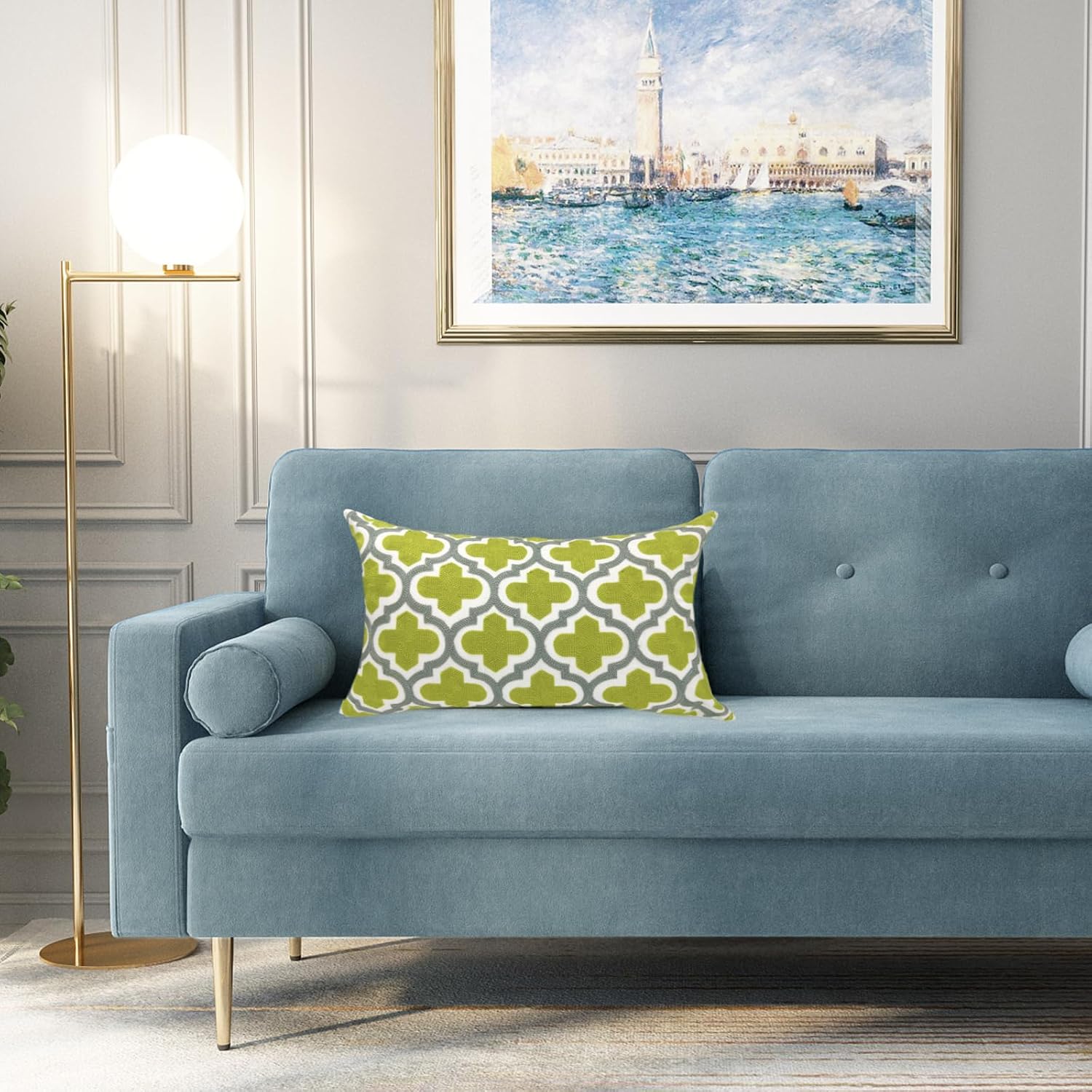 Alysheer Embroidered Lumbar Decorative Throw Pillow Cover 12"x 20", Classic Boho Geometric Embroidery Pattern Cotton Rectangular Cushion Case for Sofa Couch Living Room Bedroom(Green Grey)