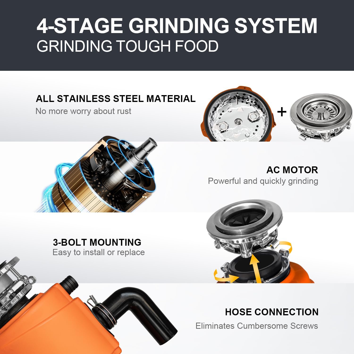- Ultra-Quiet Operation: Aviation-grade sound mute and a fully enclosed design make it quieter than standard disposals—no loud rattling or vibrations.