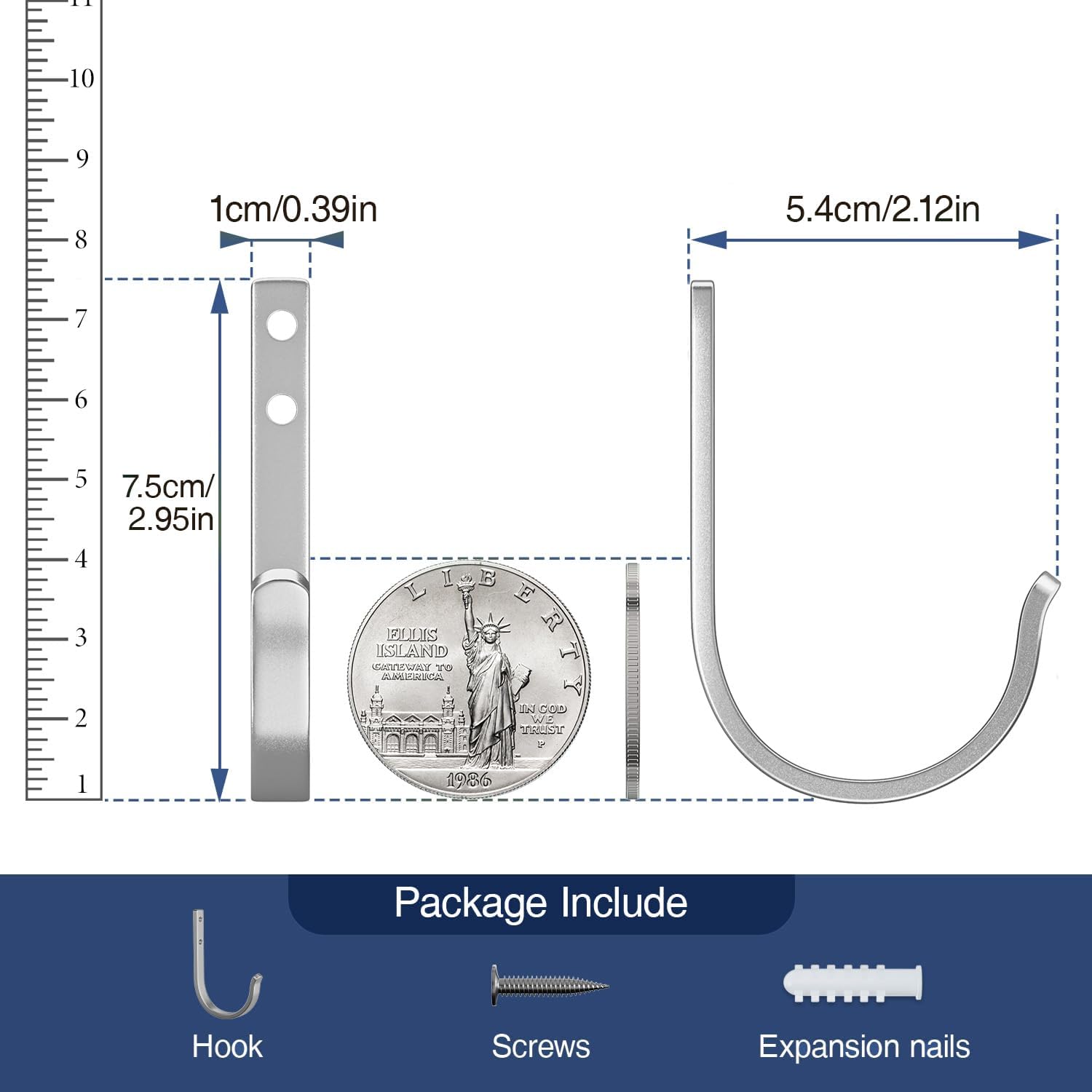 10-Pack Wall Hooks for Hanging Towel/Coat - 22LB Screw in Metal Hanger Wall Mount, for Outdoor, Closet, Door, Bathrooms, for Backpack, Robe, Silver