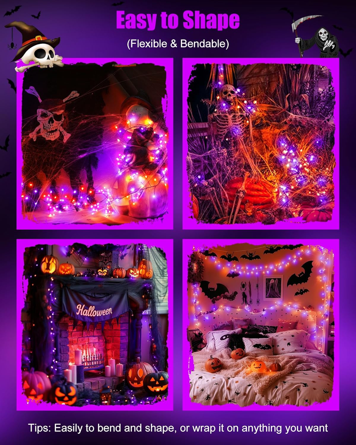 - Flexible Silver Wire: The starry moon fairy lights are made of a soft bendable silver wire.Flexible to wind this copper wire LED fairy light around the dried or fresh flowers or pumpkin, or wrapping the potted dead branches, or decorating the skeleton, great for halloween, haunted house