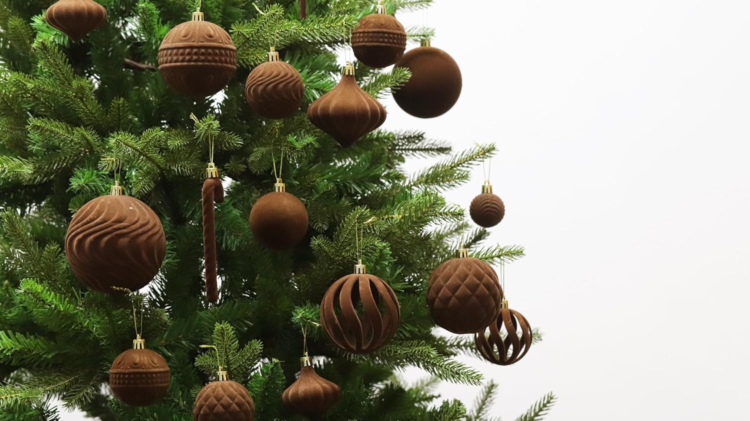 Senjie Velvet Christmas Balls Flocked Christmas Tree Ball Ornaments 63PCS Bulk Plastic Balls Xmas Decorative Hanging Ornaments Christmas Tree Decoration Brown