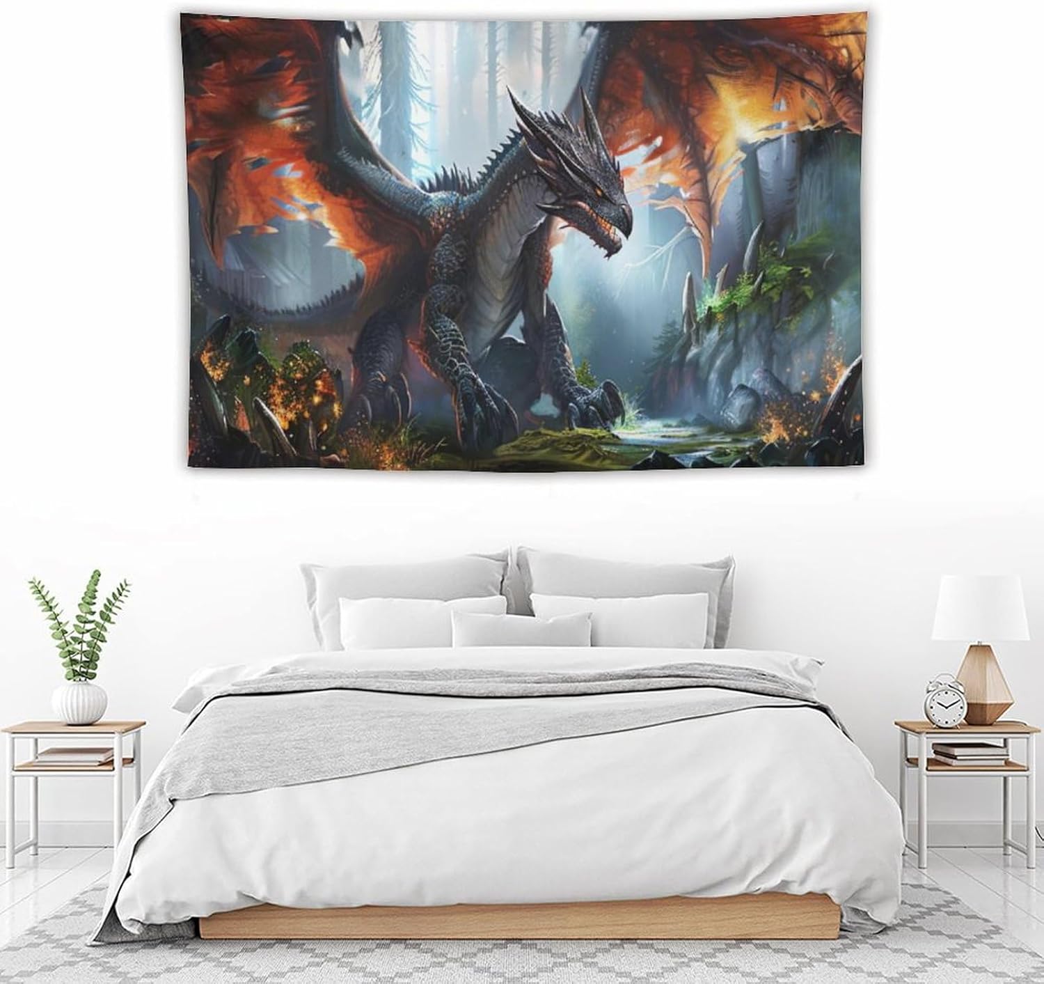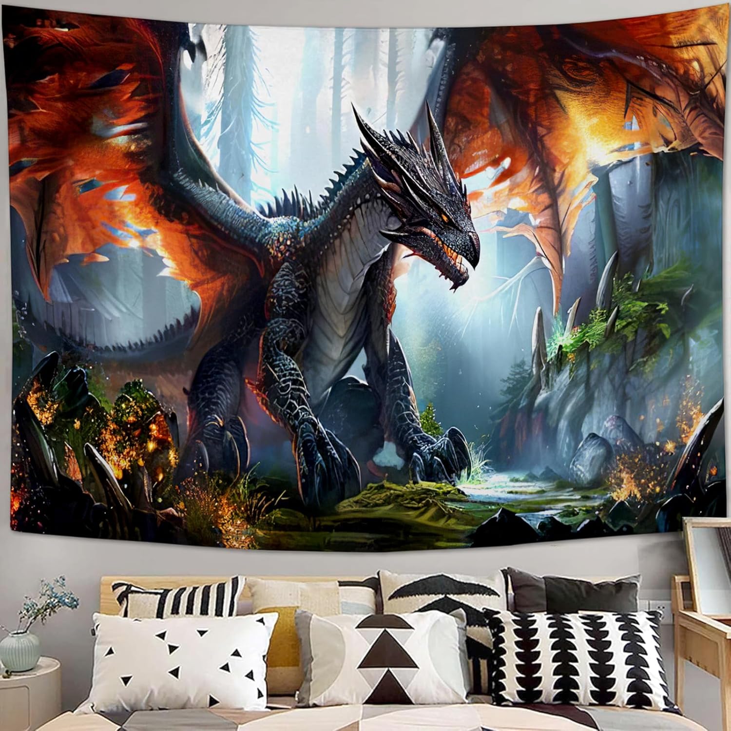 Dinosaur Tapestry Dragon Tapestries Fabric Wall Hanging Aesthetic Space Indoor Outdoor Wall Art Tablecloth Bedspread Decoration for Boy’s Bedroom Dormitory Living Room Home Decor 40"x60"