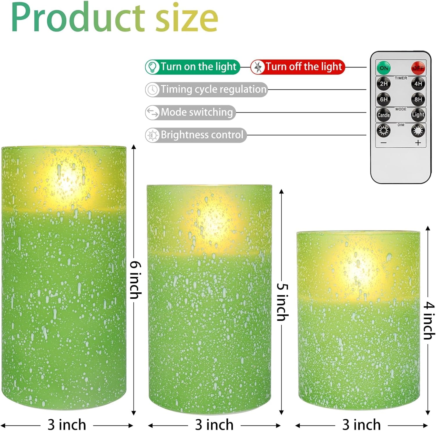 - Lifelike Flickering Flame: Create a soothing ambiance with our realistic green fake candles, featuring advanced LED wick technology for an authentic flicker; available in three versatile sizes for flexible home styling