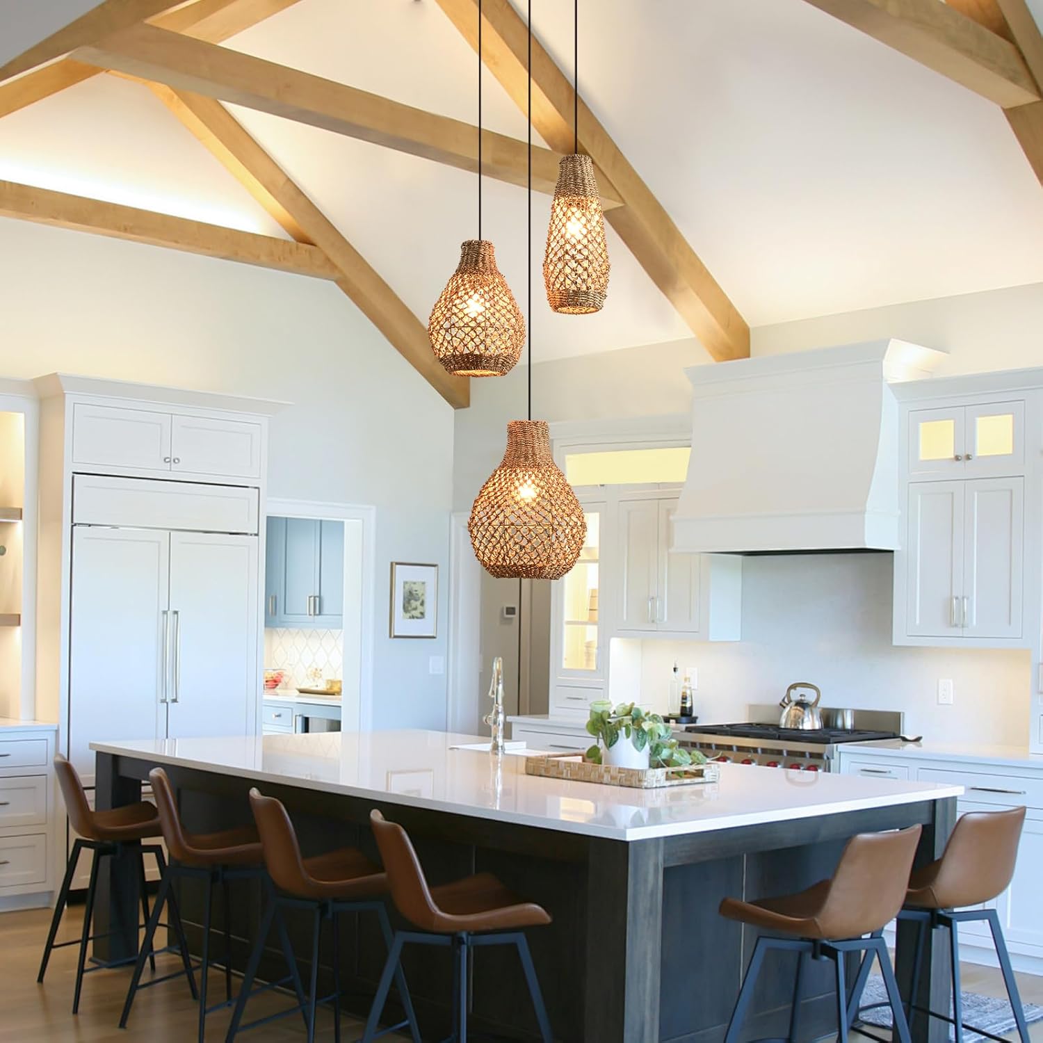 - Applicable places: Bohemia Rattan Pendant Lightis suitable for farmhouse kitchen island;living room, dining room laundry room;corridor basement;and can also be used for commercial purposes;The hanging chandelier can also be fixed on flat or sloping ceilings
