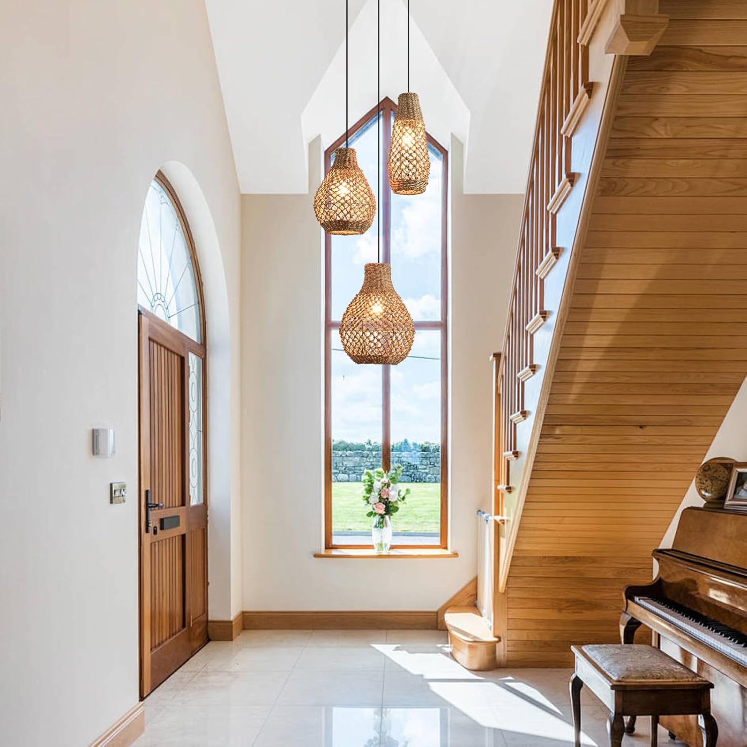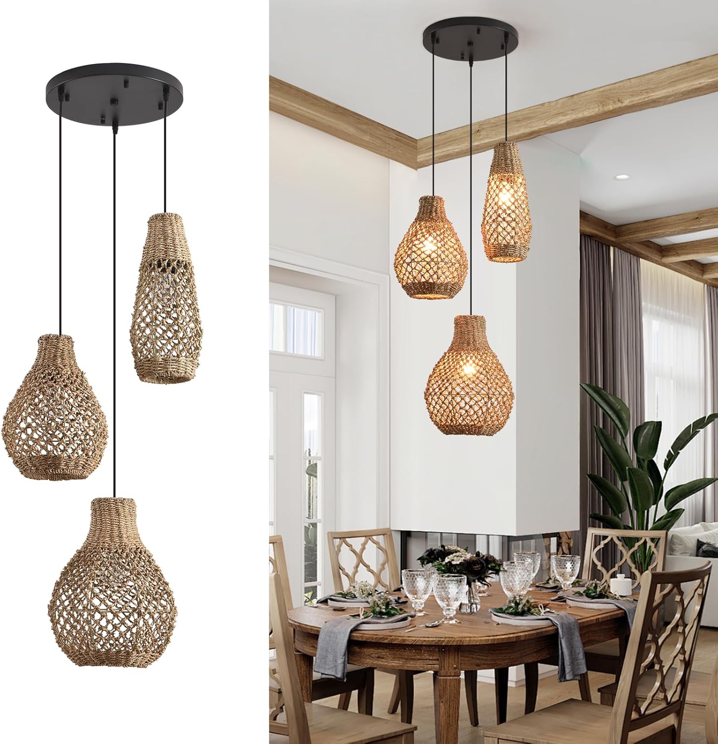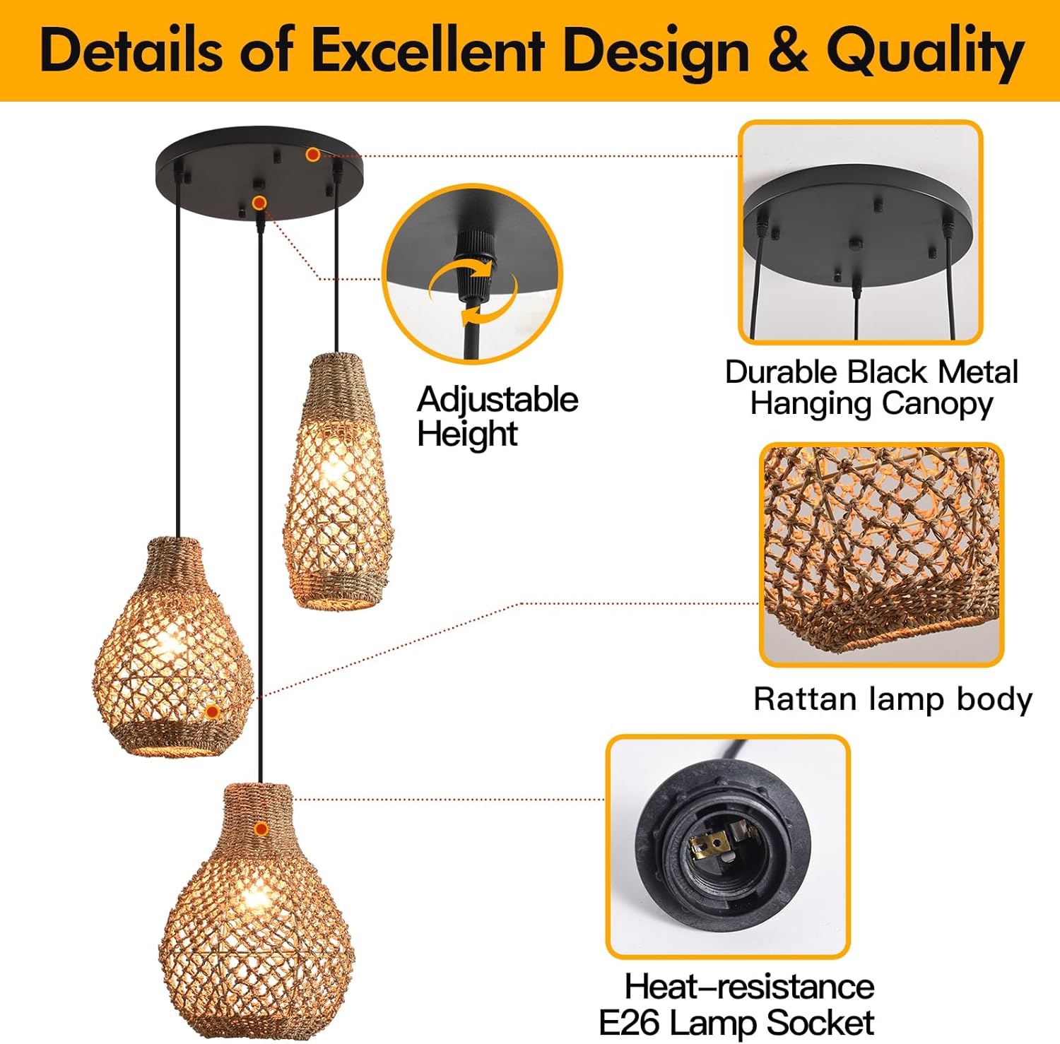 - Simple installation: rattan woven pendant light includes installation instructions and accessories required for installation; installation is very convenient; for safe and reliable installation; we recommend that you contact a professional electrician directly