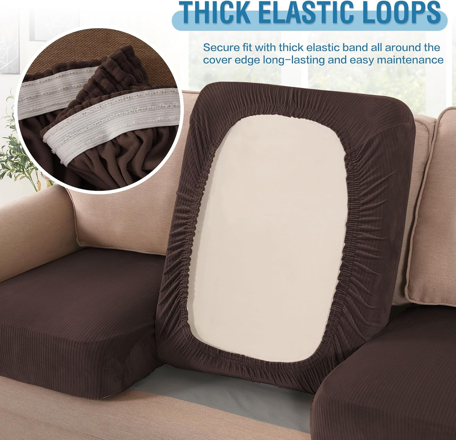 - INCREDIBLY COMFORTABLE VELVET: Products passed GLOBAL RECYCLED STANDARD certificate. 3 pieces included. Crafted from luxurious velvet plush fabric with unique striped cuts, feature thick, soft, smooth, anti-wrinkle, no fading, durable as well as highly stretch. Protect your cushion furniture from daily wears and tears, stains, kids, scratches from pet claws, dogs or accidental spills