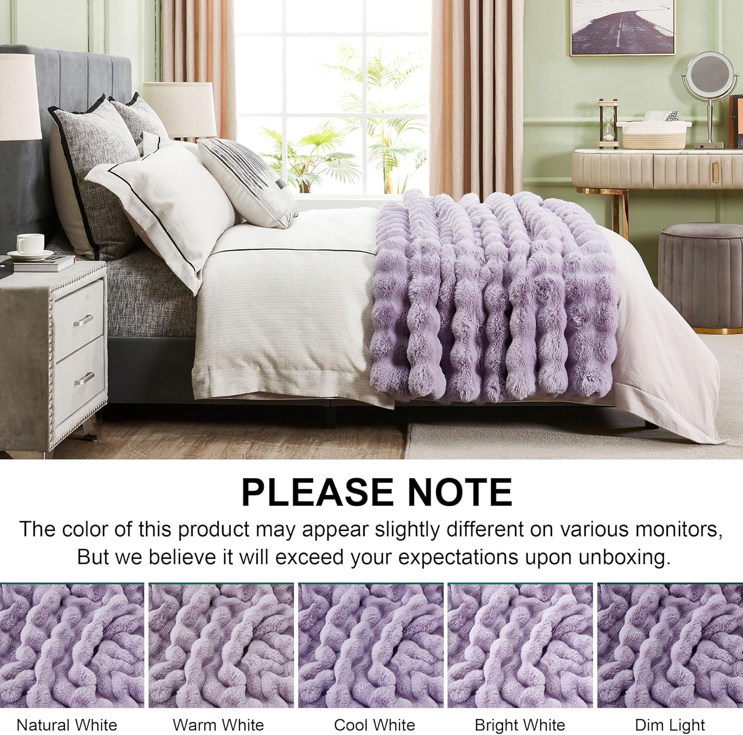DREAMNINE Large Soft Thick Fuzzy Bubble Faux Rabbit Fur Blanket Queen Size 80" x 90", Double Side Comfy Plush Warm Shaggy Fluffy Blankets, Luxury Big Cozy Textured Furry Blanket for Bed, Lilac Purple