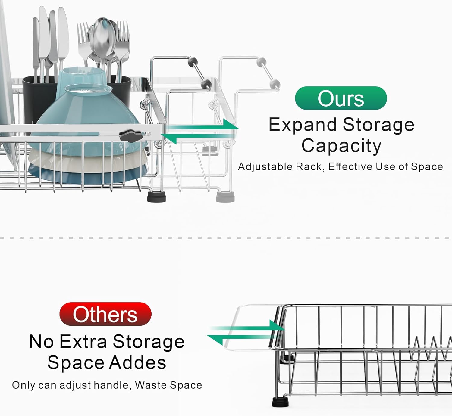 - Rustproof Stainless Steel Design: Crafted from premium stainless steel that's 30% thicker than most, this dish rack is sturdy, durable, and 100% rustproof—perfect for daily use in humid kitchen environments. Enjoy worry-free drying, knowing your dish rack will stay clean and corrosion-free for years.