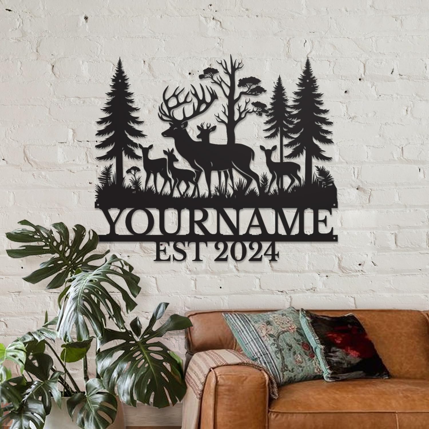 - Wilderness Whimsy: Transform your space with our Custom Deer Forest Metal Wall Decor, featuring Personalized Deer Forest Name metal signs.