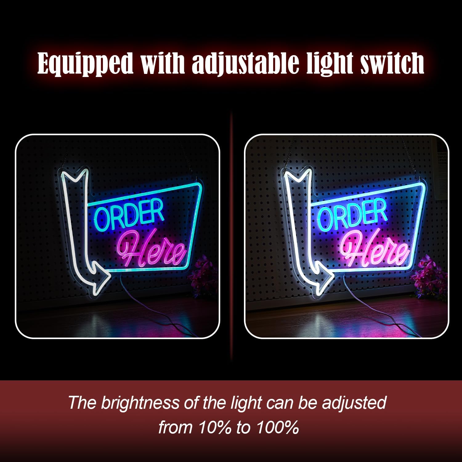 Order Here Neon Sign Led letters Sign Dimmable Order Neon Light for Wall Decor Larger Order Here Light Up Sign for Restaurant Shop Bar Business Neon Decor(16.1 * 12.6 In)