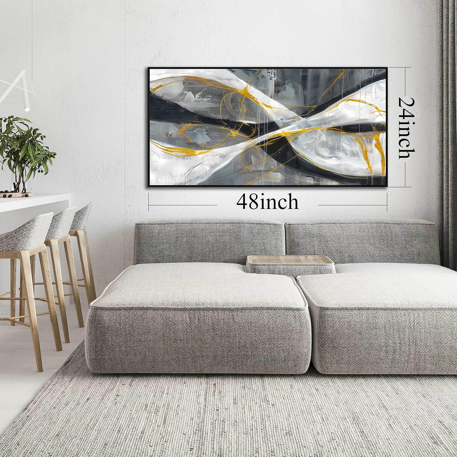 Ouzzlie Abstract Wall Decor Art Modern Canvas Picture Black White and Gold Wall Art for Bedroom Office Decoration 24" x 48"