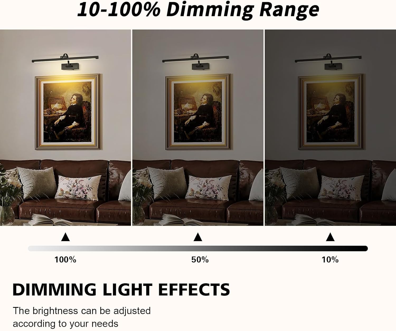 - Wireless Gallery Lights: The black picture lights are battery powered. No need for reserved wires. more convenient to unmount for charging every severeal weeks and as portable use. More suitable for renters.