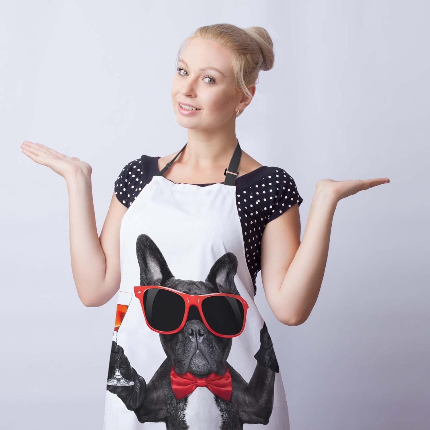 Garden Apron for Men French Bulldog Dog Funny Aprons for Women for Kitchen Cooking Restaurant BBQ Painting Crafting Gardening 27” (W) x 31” (H), Waterproof Apron