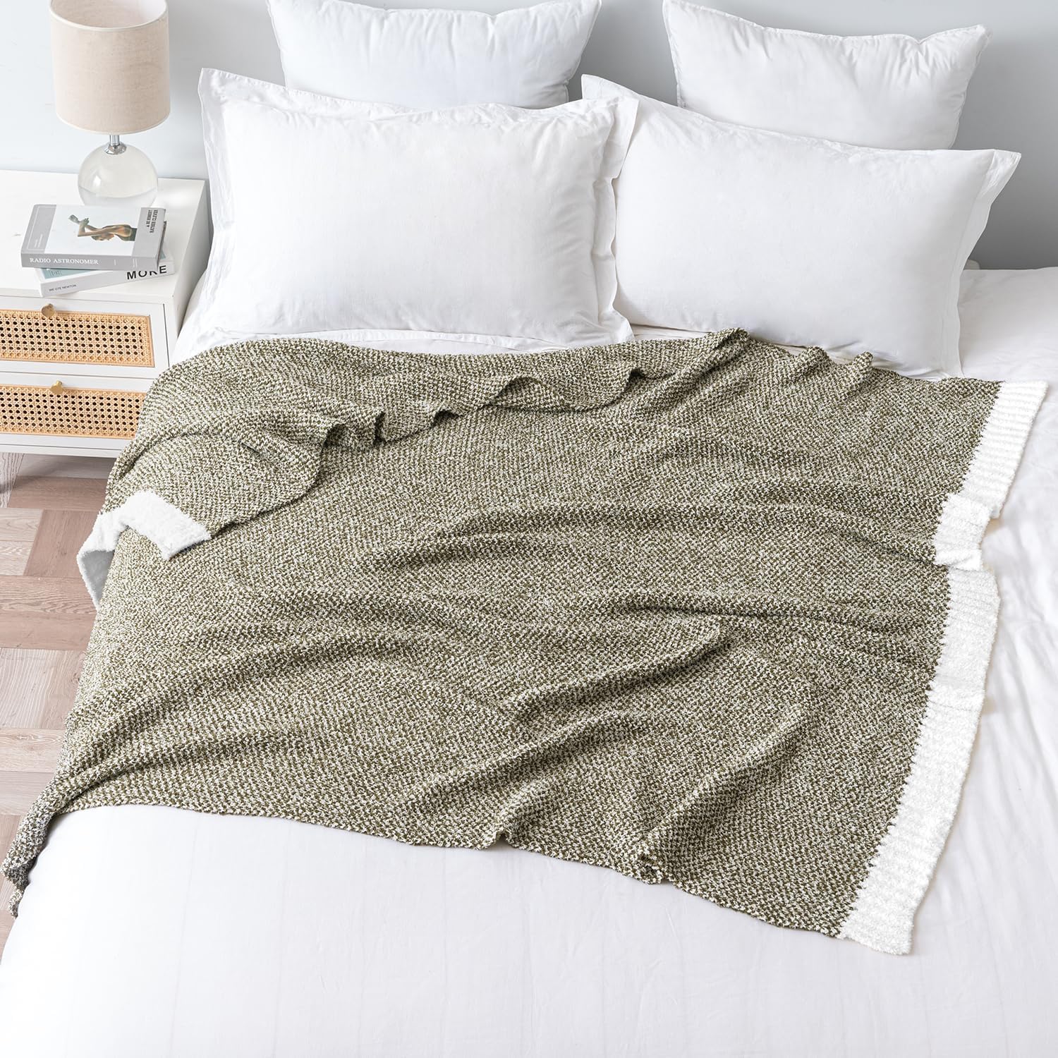 MIULEE Super Soft Throw Blanket for Couch, Olive Green Cozy Fluffy Warm Blankets Lightweight Knit Throw Blankets for Sofa, Bed, Chair, Living Room, Camping, Picnic, 60 x 80 inch