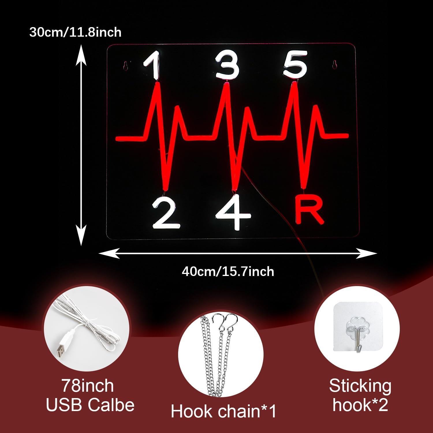 - Easy to install and use: Neon light signs have two pre drilled holes for easy hanging and can be installed on walls or tables. The manual gearbox light up sign is larger than the regular neon sign (15.7 "* 11.8"), with a USB cable length of 78 ". It is cleverly designed and can be connected anywhere in the room through an adapter interface.