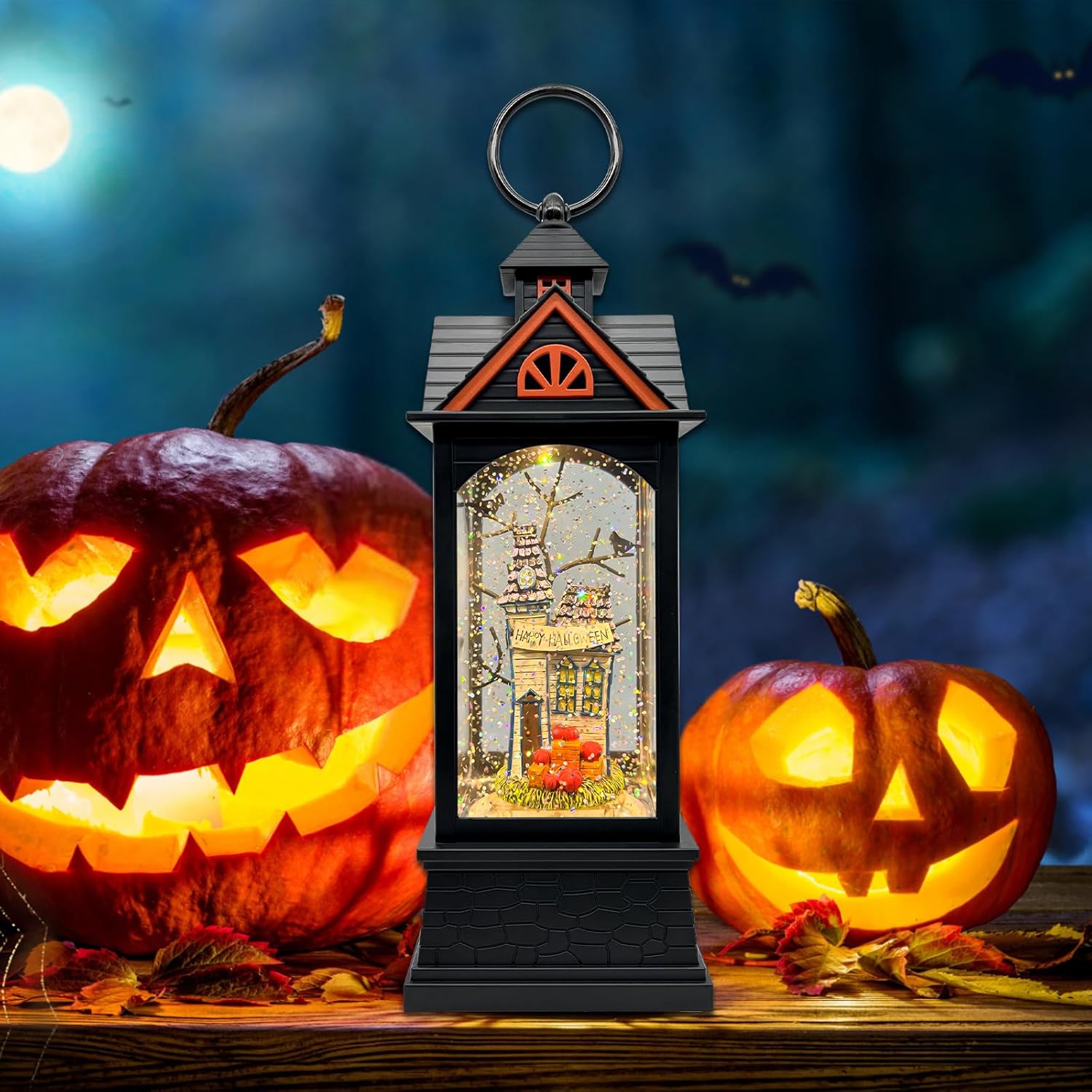 - Halloween Lantern: Bottom switch (On/Off/Timer). In Timer mode, the snow globe lantern will light up for 6 hours, turn off for 18 hours, and automatically light up again at the same time the next day — a 24-hour cycle