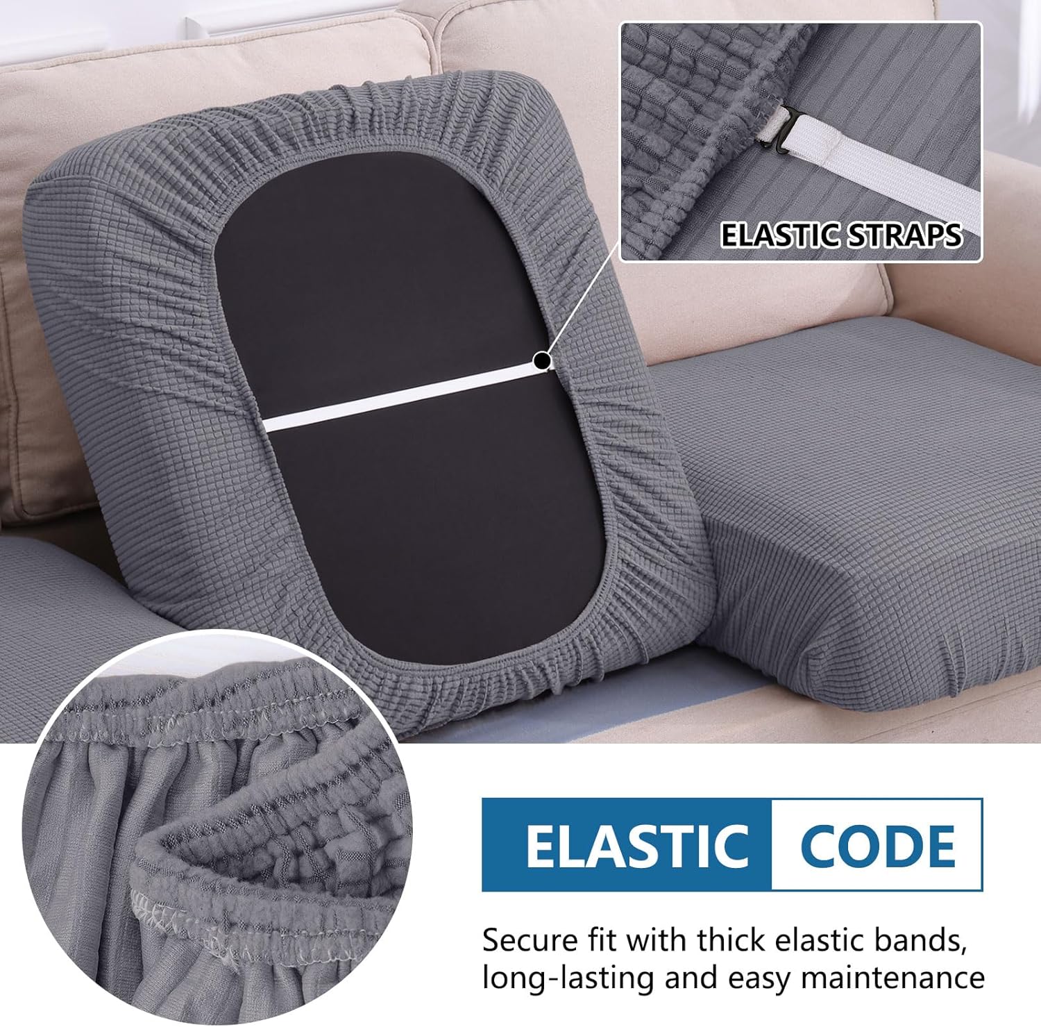 - [Stay in Place] The unique elastic band design makes the individual couch cushion covers more fit the cushion, easier to install, and more concise in appearance. Even if the child bounces on the sofa, the pet plays on the sofa, or sleeps on the sofa, the waterproof cushion covers remains on the sofa or chair.
