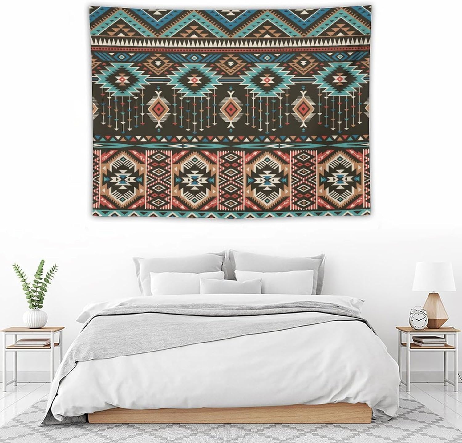 HZOHNAGO Aztec Tapestry Turquoise Blue and Brown and Native American Tribal Pattern Printed Wall Tapestry Wall Hanging for Bedroom Living Room Dorm 40" W x 30" H