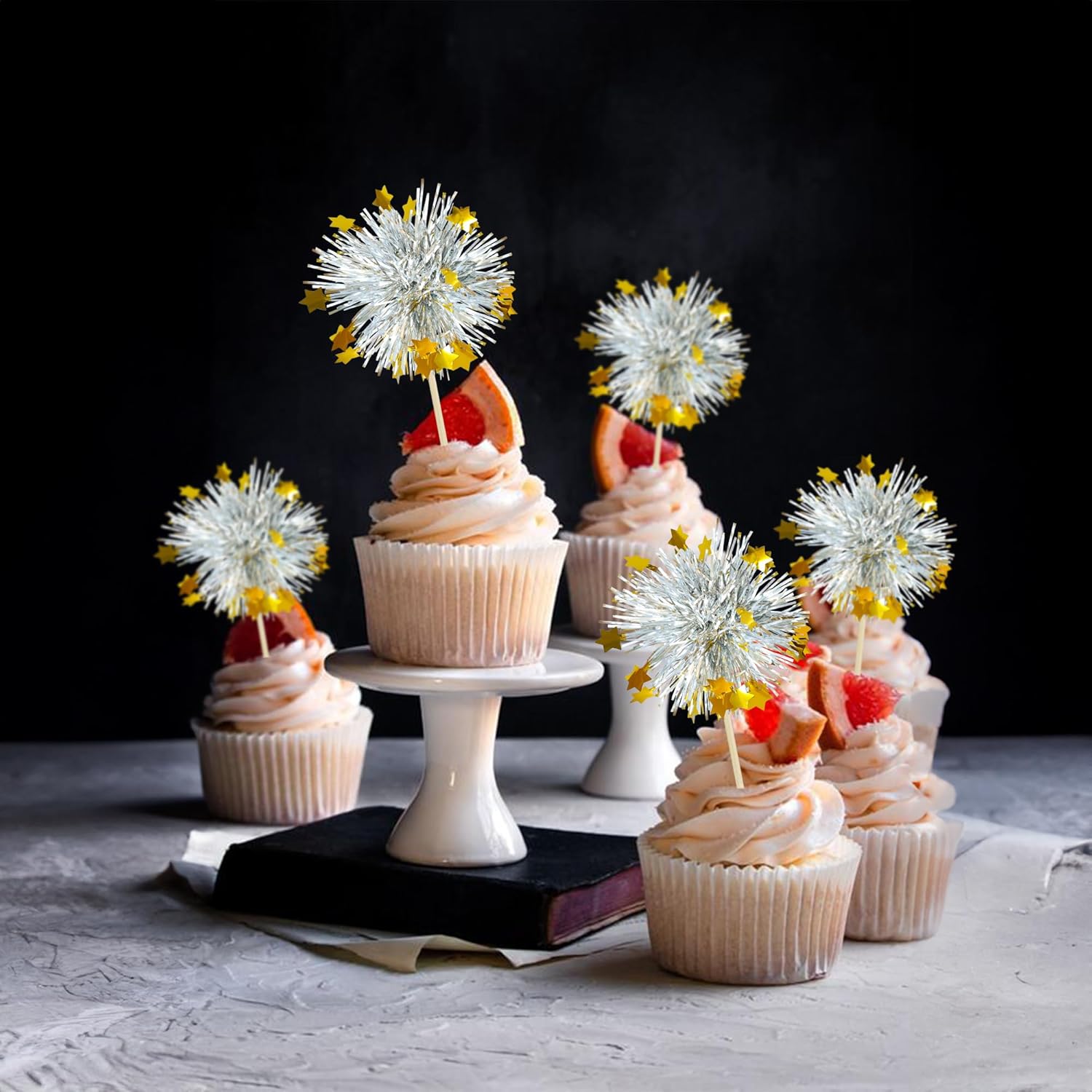- 【NO Required】: 30Pcs Foil Firework cupcake toppers can put in the cake directly! These 30Pcs Foil Firework Cupcake toppers save your time and super easy to use. You can easily dress up your birthday theme cakes, yes! but don't stop there, put them into desserts, cookies, fruit pieces, appetizers, muffins and so much more!