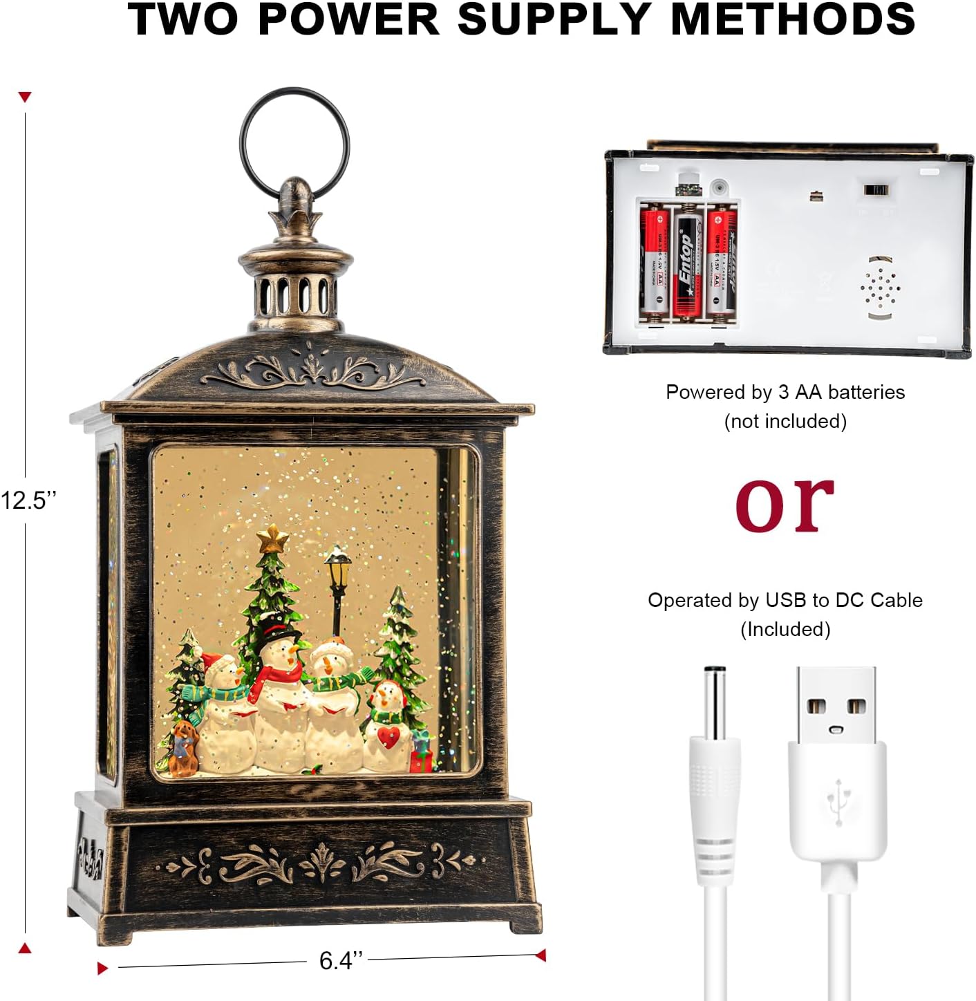 12.5'' Christmas Snow Globe Lantern Lighted Snowman Choir Musical Snowmen Carolers Water Lantern in Swirling Glittering Home Decoration and Gift, Battery Operated or USB Powered