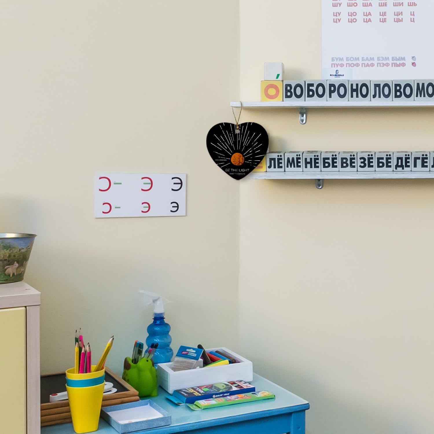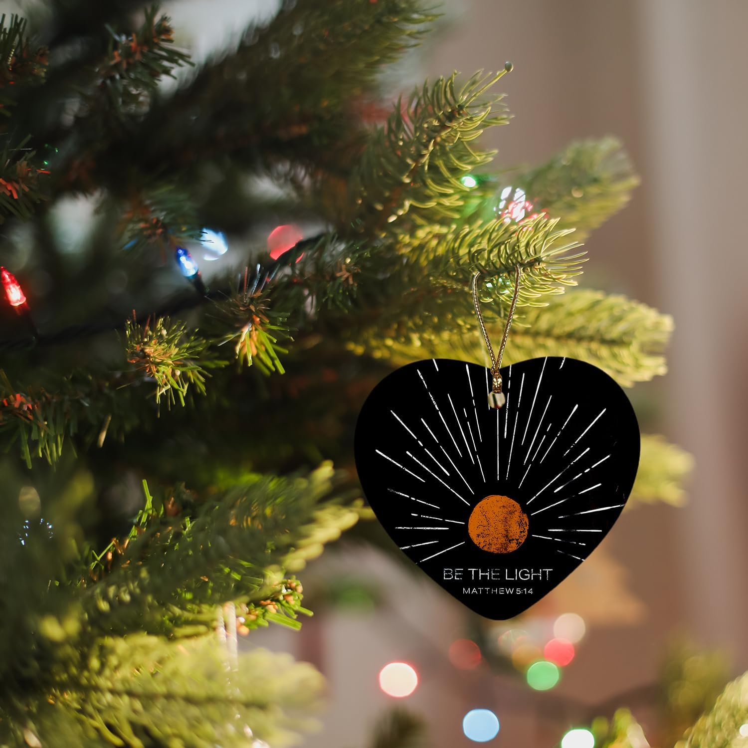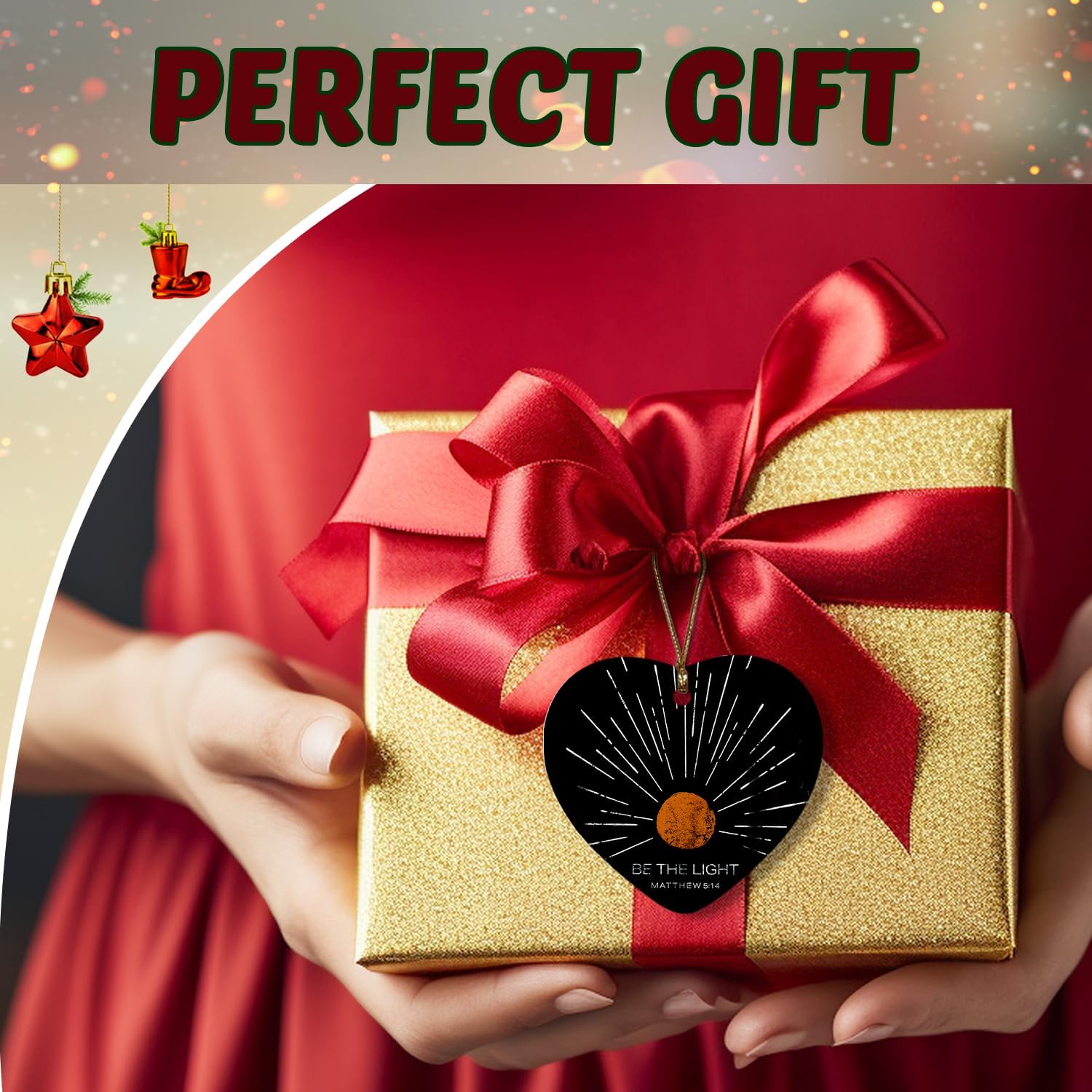 Christian Ornaments, Boho Sun Sunshine Be The Light Scripture Religious Ceramic Ornament Heart Keepsake Decorations, Christian Gifts for Women Teen Girls