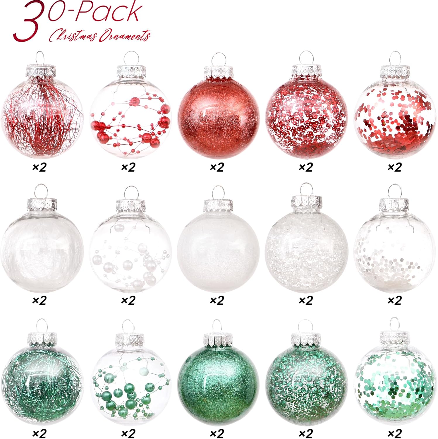 - TRANSPARENT & SPARKLING - These Christmas ball ornaments feature clear glaze base with sparkling decorations like glitter, sequins, tinsel and beads to provide a stunning shimmering look in the light. They will be perfect for decorating your home and become part of your holiday tradition
