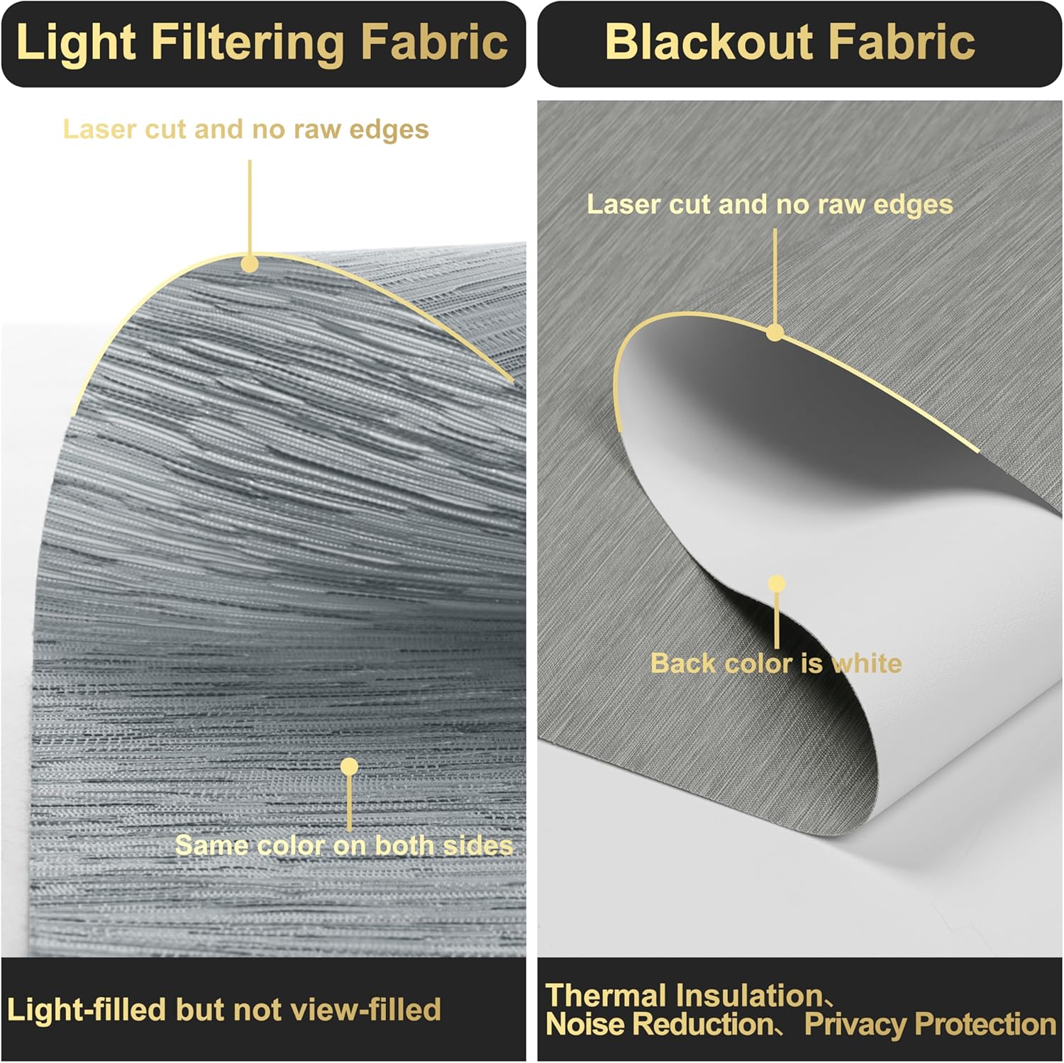 - MULTI-PURPOSE SHADE:Dual roller shades consisting of blackout and light filtering shades, blackout roller shade can 100% blackout,thermal insulation and UV Protection,so that you can experience quiet and comfort of the night during daytime;Light filtering roller shade allow light to filter into your room,and no glare,soft diffused light allow for perfect balance of light and darkness,and also enhances overall aesthetics of your home,allowing for a romantic and comfortable living environment.