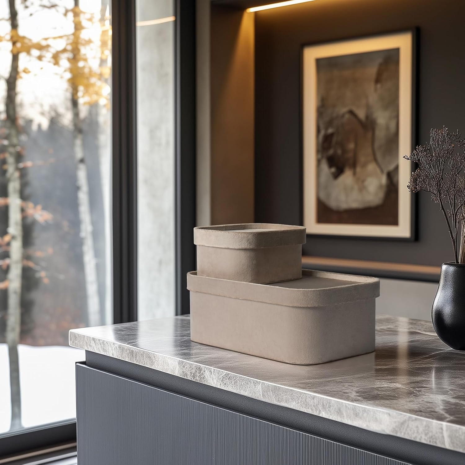 - SOPHISTICATED TAUPE STORAGE BOXES: Elevate your organization game with our stylish taupe storage boxes. Blending form and function seamlessly, these pieces feature a simple yet elegant lid that can be used as a tray for your jewelry, keys, or other small treasures, adding a touch of refined sophistication to your space