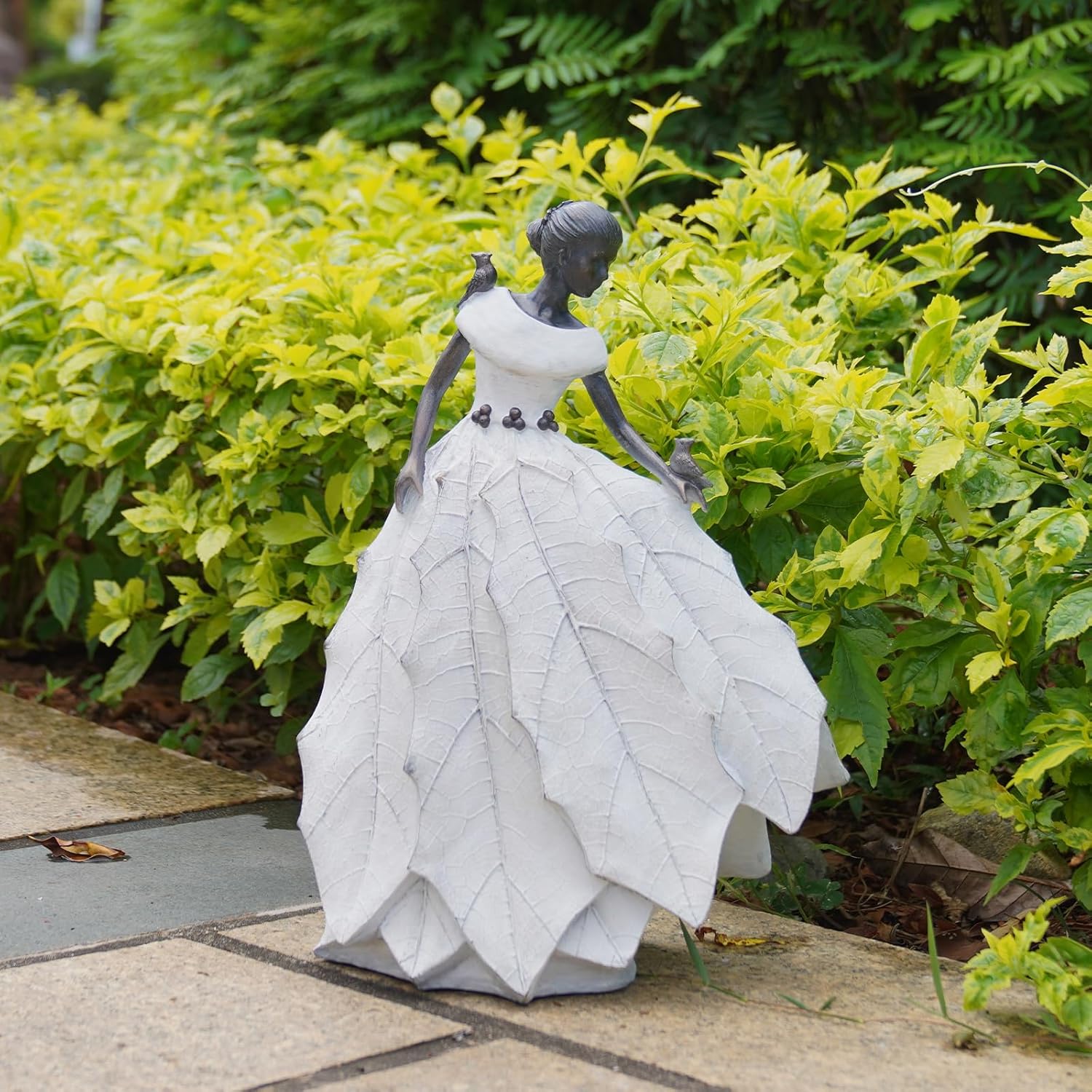 - BEST GIFTS:The ruffle skirt girl statue will impress indoors, in the yard and on the lawn. It makes the perfect garden gift for family and friends for Christmas, Thanksgiving, birthdays, Mother's Day and housewarming.
