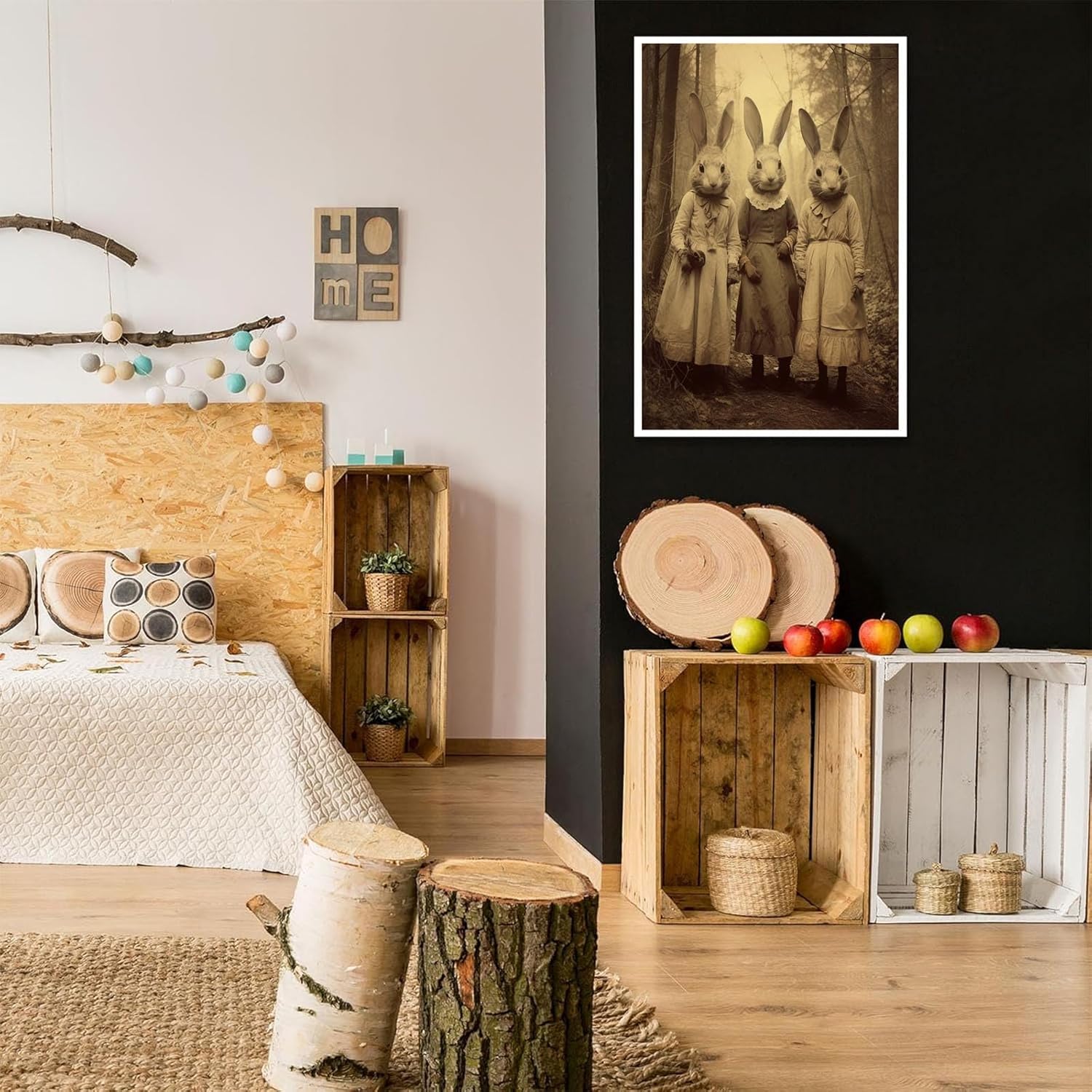 - versatile decor for any scene:whether you're decorating your living room, bedroom, office, dorm, or bathroom, our Occult Three rabbits of the forest wall art and posters are versatile, infusing an goth décor aura of witchcraft and gothic occult vibes.
