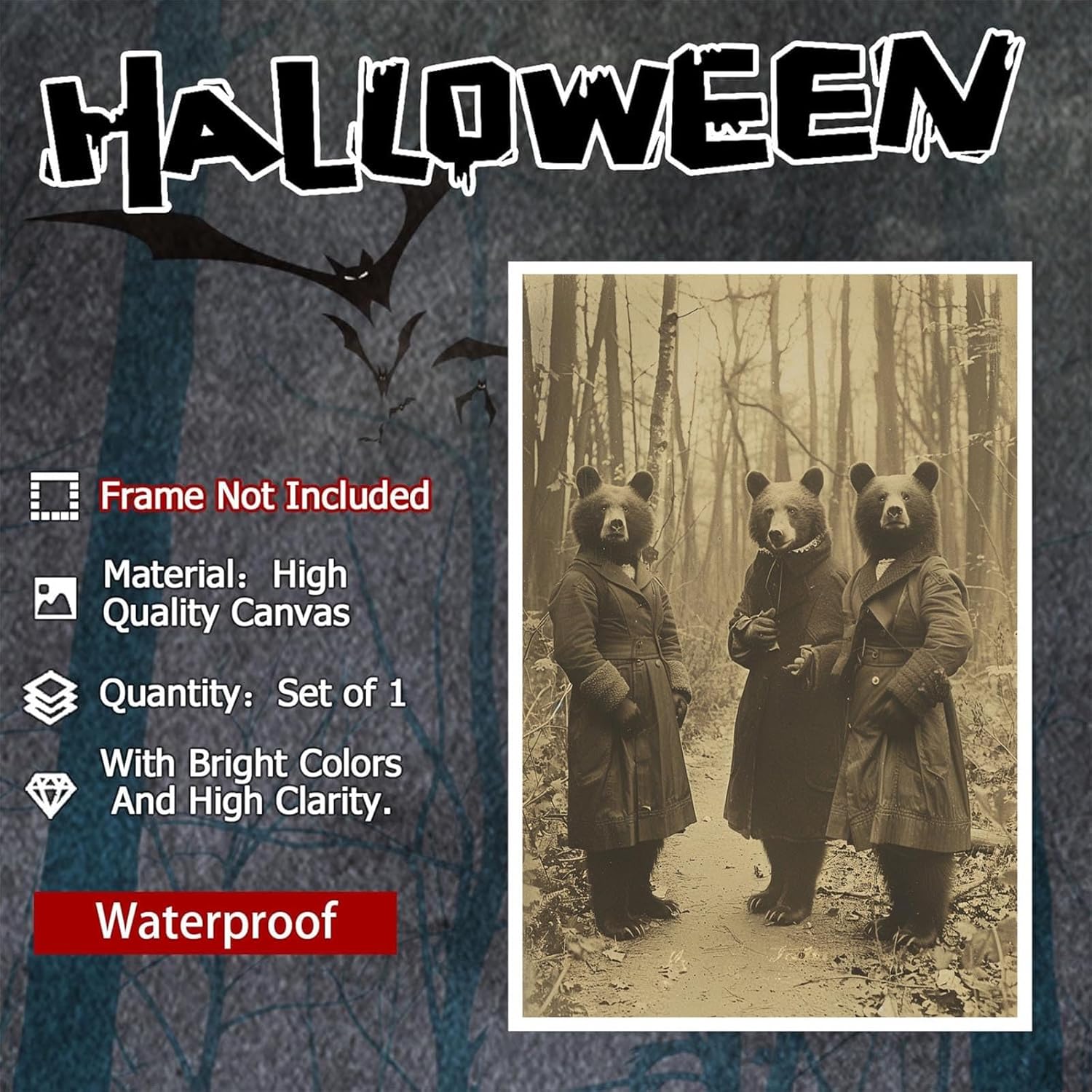 Vintage Horror Halloween Wall Decor Spooky The Three Bears In Occult Forest Spooky Canvas Wall Art Poster Gothic Dark Academia Decorations Room Creepy Print 12X16inch Unframed