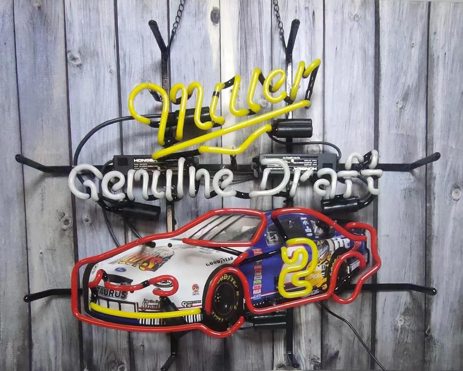 Neon Signs Beer Bar Club Bedroom Compatible For Miller Genuine Draft Car Glass Neon Signs for Office Hotel Pub Cafe Birthday Party Man Cave Neon Light Art Wall Lights 24 X 20 Inches