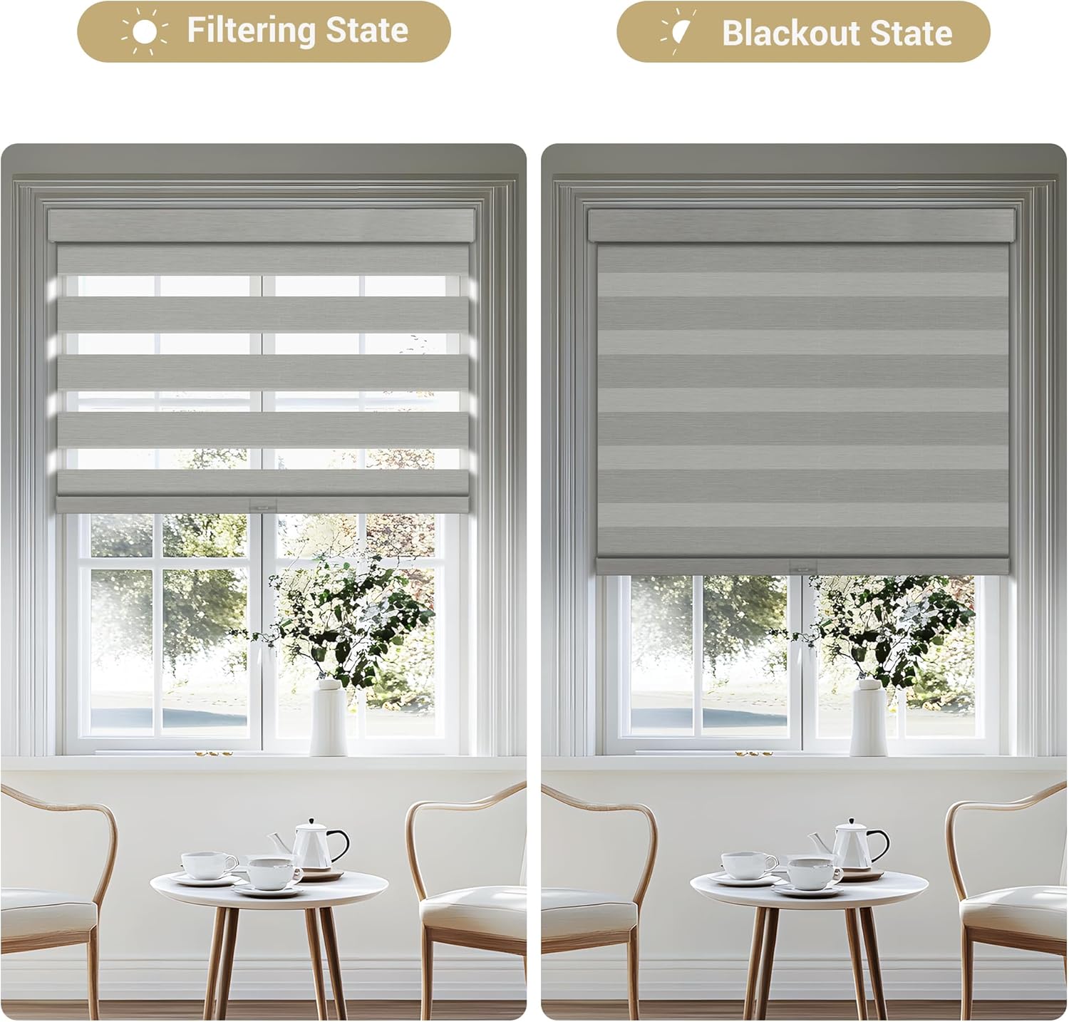 Cordless Zebra Blinds for Windows, Blackout Interior Blinds,Easy to Install,UV Protection,for Offices and Home,Custom Roller Shades, Mousse Light Grey,73" W x 56" H