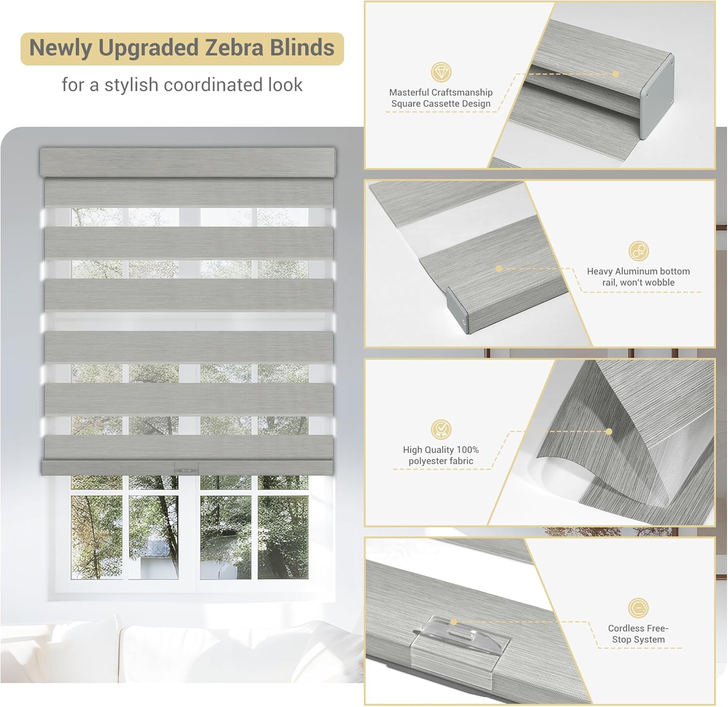 Cordless Zebra Blinds for Windows, Blackout Interior Blinds,Easy to Install,UV Protection,for Offices and Home,Custom Roller Shades, Mousse Light Grey,51" W x 80" H