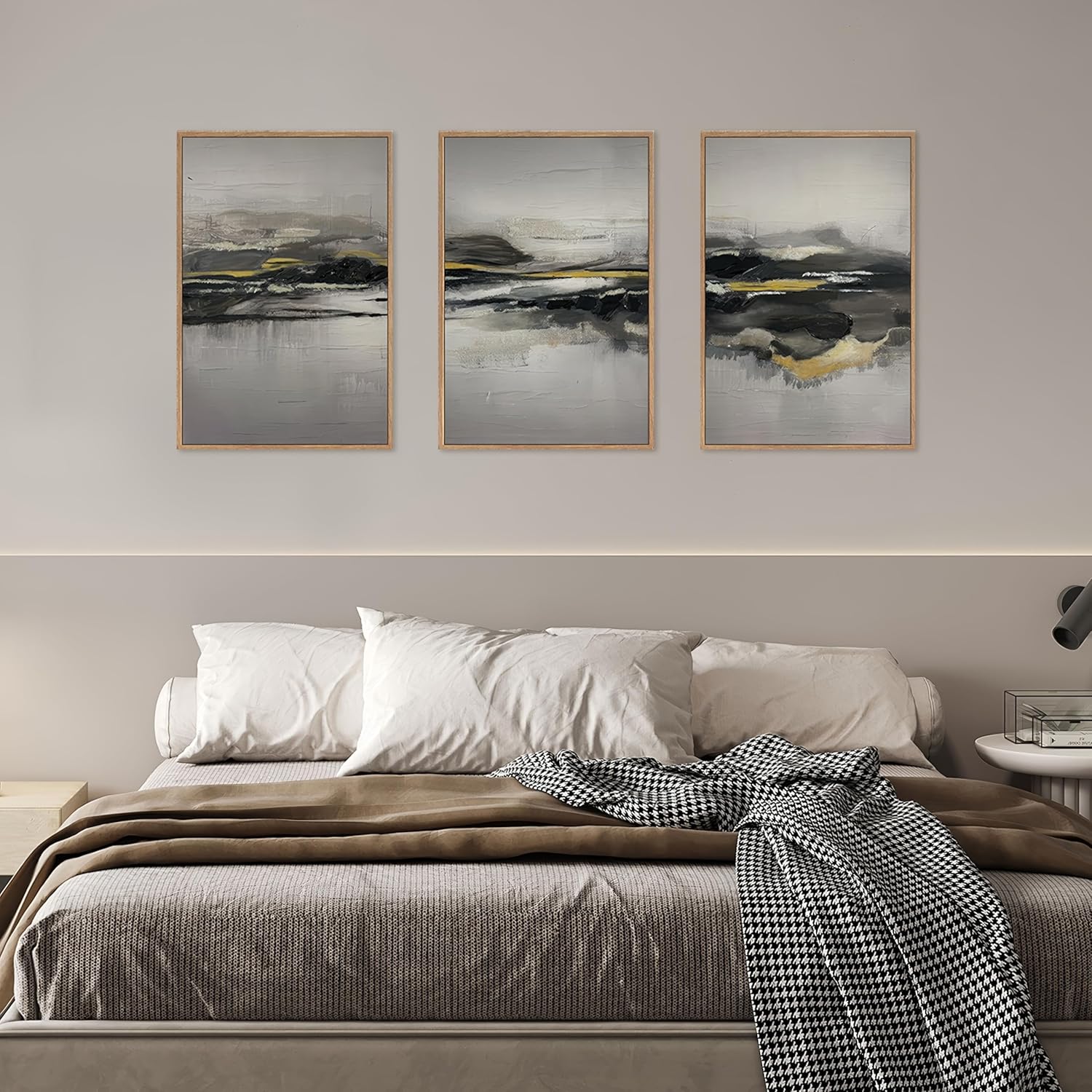 - 【Abstract Framed Canvas Wall Art】This abstract landscape wall print set is a popular choice for enhancing the aesthetic appeal of various interior settings. The wall decor set is characterized by a harmonious blend of black, brown, creating a balanced and unified visual arrangement. Whether you opt to display it in your living room, bedroom, or office, the non-figurative style and neutral colors contribute to a tranquil and visually pleasing environment.