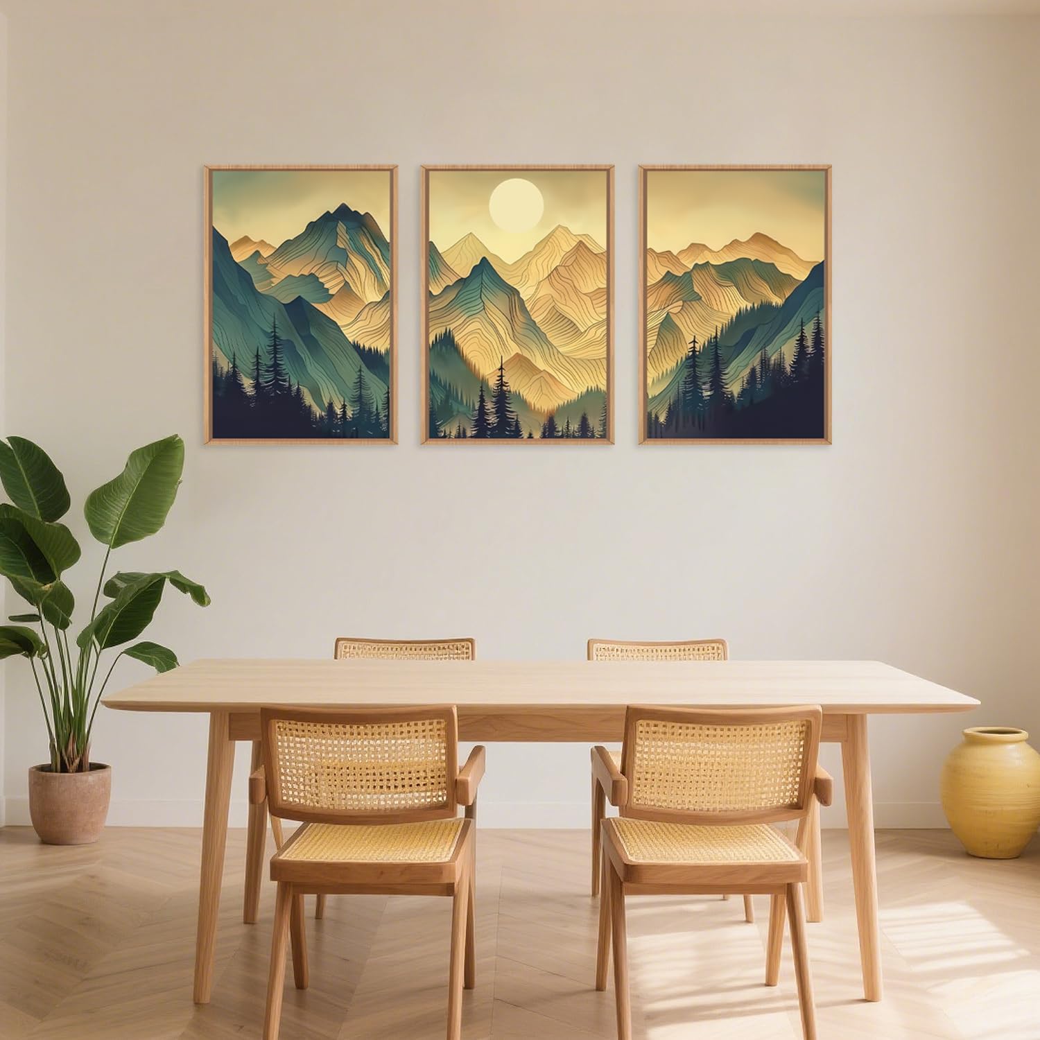 - 【Pretty Scenery Framed Canvas Wall Art】This abstract landscape wall art set is a popular choice for enhancing the aesthetic appeal of various interior settings. The wall decor set consists of colorful mountain, jungle, and sunrise harmonizing together to create a balanced and unified visual effect. Whether you choose to place it in your living room, bedroom or office, its non-figurative style and neutral colors create a serene and visually pleasing environment.