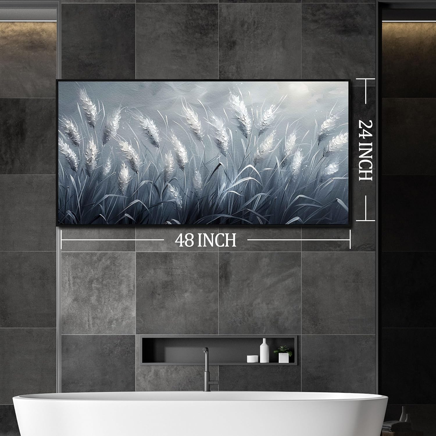 Plant Pictures Wall Art Reed Artwork White Photos Wall Decor 24"x 48" Grey Large Wall Decorations for Girl Room Decor