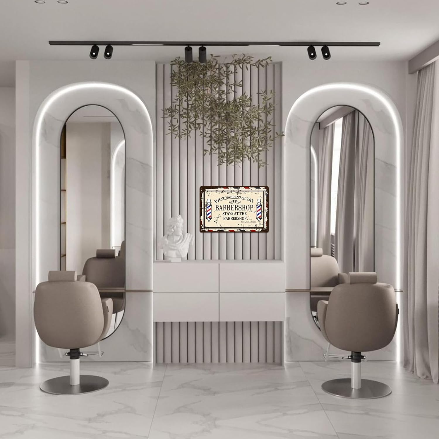 Barber Shop Decor Accessories - Vintage Barbershop Metal Tin Signs Haircut Wall Art Posters Gifts for Men Decorations - What Happens At The Barbershop Stays At The Barbershop Sign 8x12 Inch