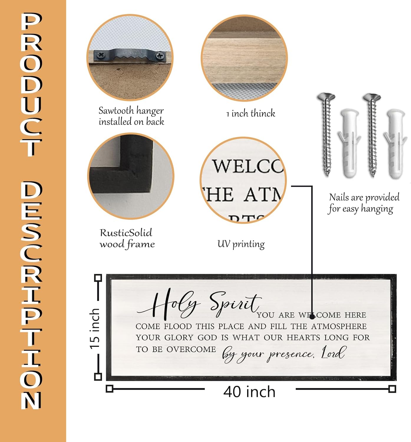 Holy Spirit You are Welcome Here Wall Decor Art 40x15 Inch Large Christian Song Bible Verse Plaque Wood Framed Sign Living Room Scripture Quote Religious For Office Wall Hanging (Black)