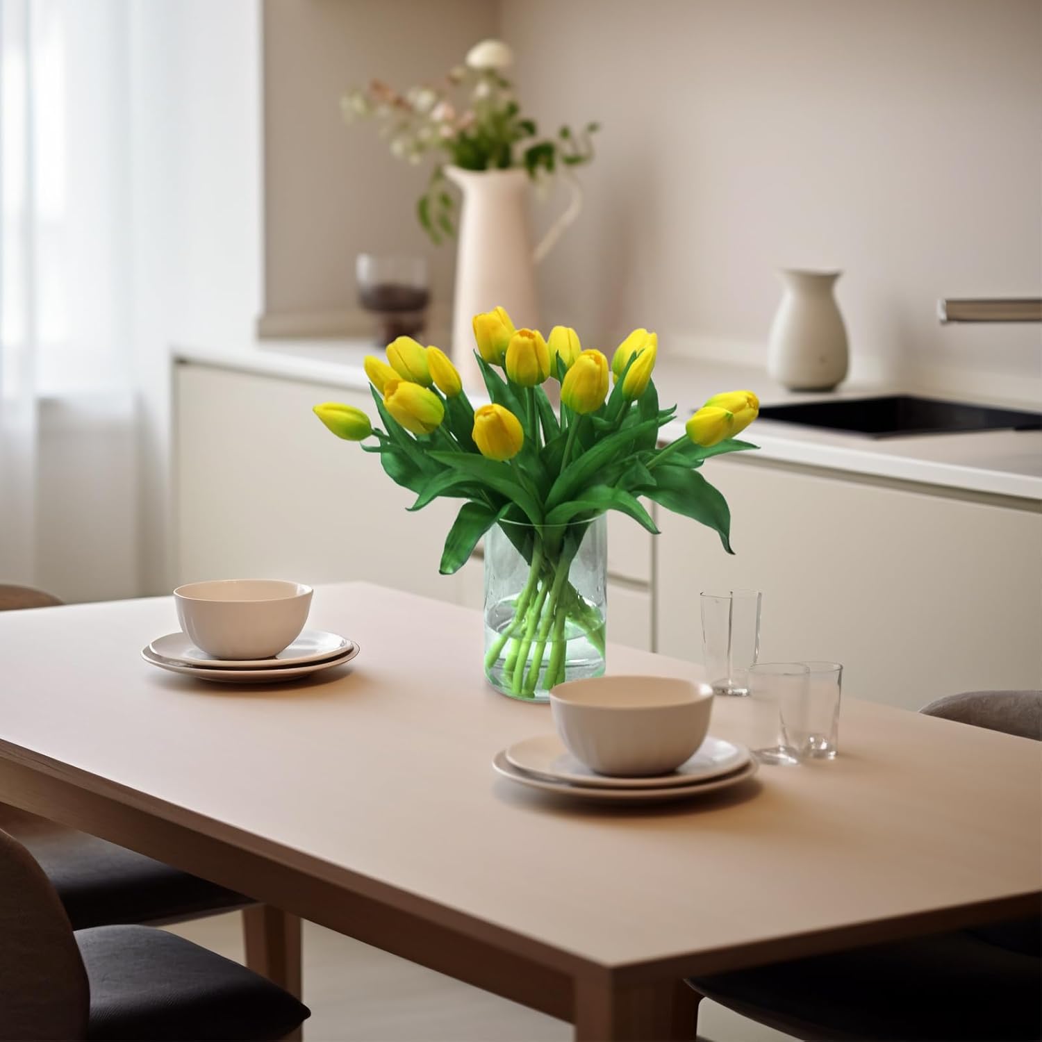 15pcs Artificial Tulips Flowers, Fake Tulips Real Touch, Faux Latex Bouquets, for Party Wedding Home Room Decoration (Yellow)