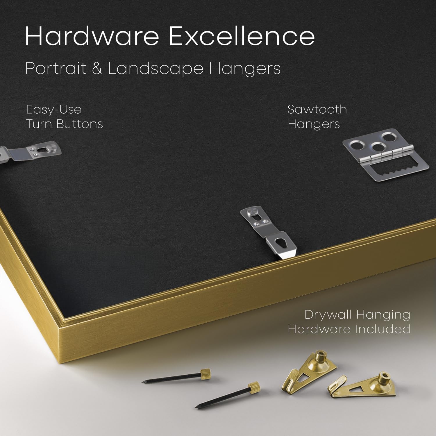 Homeforia 8.5 by 11 Picture Frame Gold, High End Metal 8.5x11 Poster Frames with Mat 6x8 Photo, 8.5 x 11 Frame Matted to 6 x 8 Print, 8.5by11 Wall or Tabletop Frame, Tempered Glass, Wall Kit, Set of 1