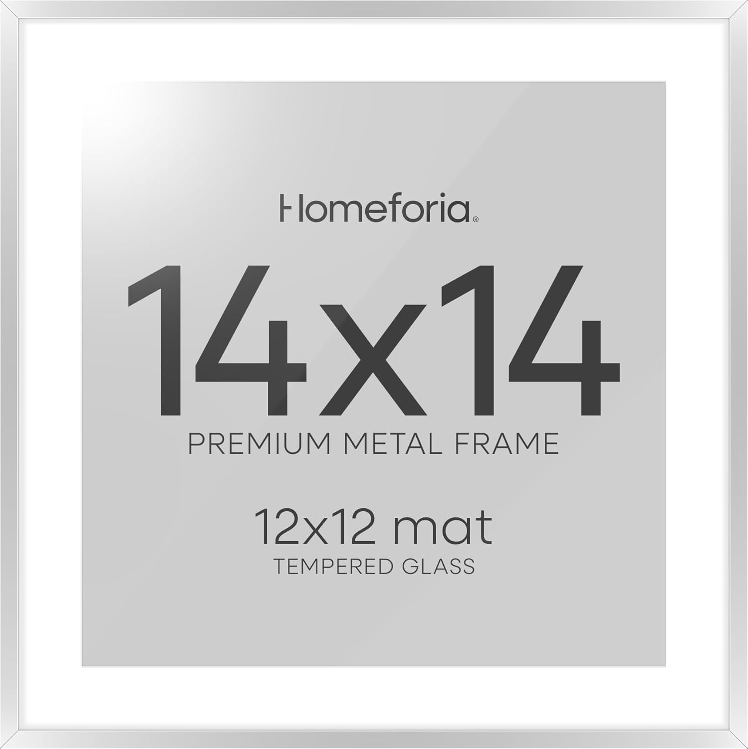 Homeforia Silver 14x14 Picture Frame, High End Metal 14 x 14 Square Frame with Mat 12 x 12 Photo, 14x14 Poster Frames Matted to 12x12 Print, 14 by 14 Hanging Frames, Tempered Glass, Wall Kit, Set of 1