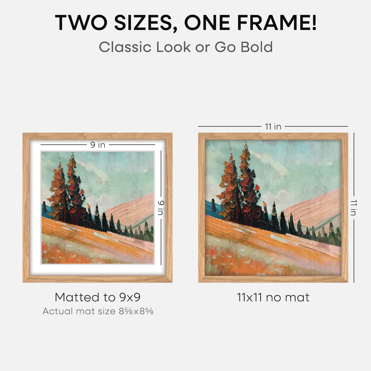 - MATTED OR EDGE-TO-EDGE—YOUR CALL. A crisp 9x9 white mat creates negative space, elevating your image with gallery precision. Or remove it for 11x11 bold, uninterrupted impact.