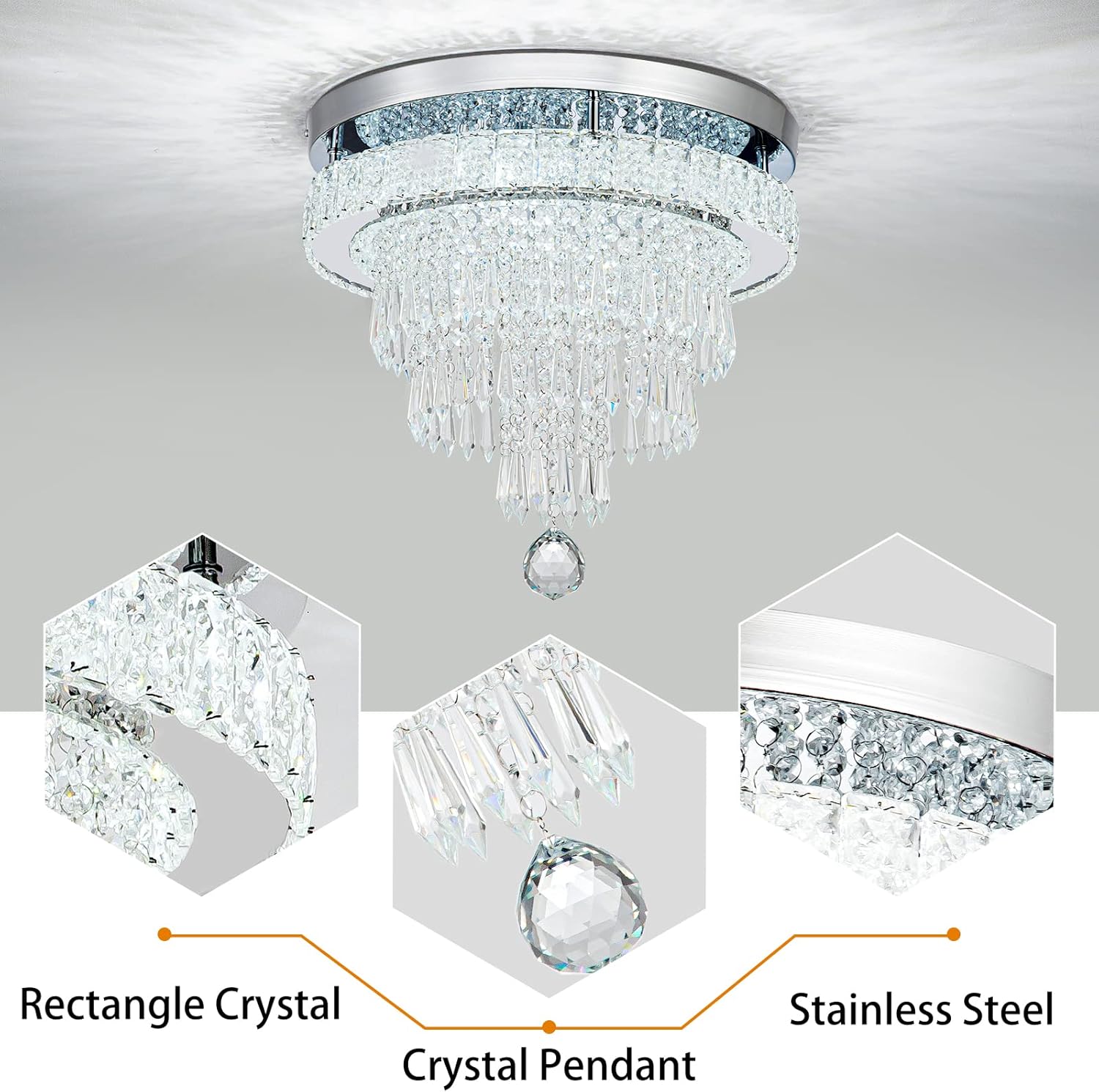 16“ Crystal Chandeliers Light Flush Mount Ceiling Light Fixtures Round Modern LED Chandelier for Living Room Bedroom Dining Room Closet Hallway (Cool White)