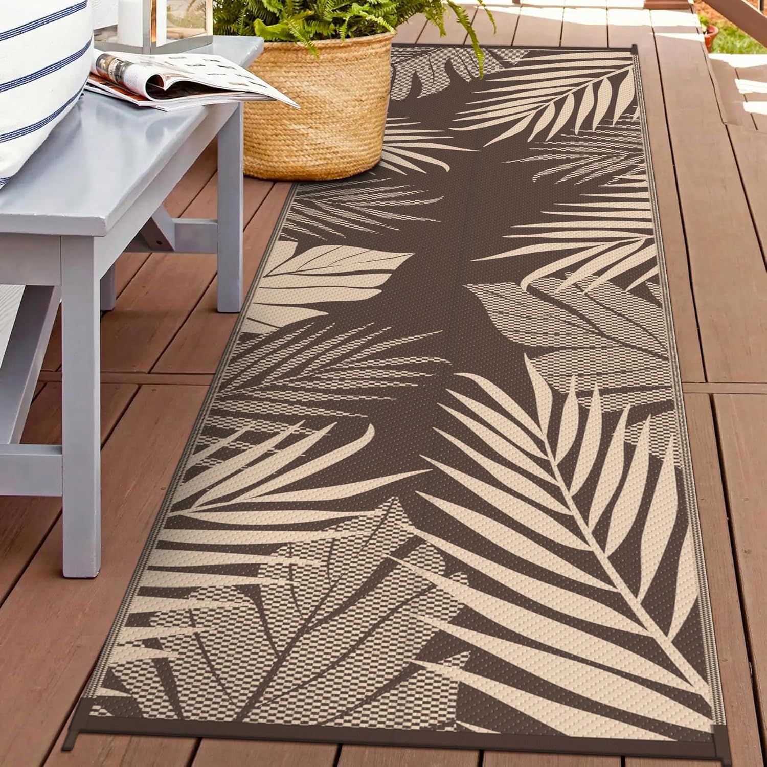 - Palm Leaf Design & Double-Sided Pattern: GENIMO reversible fall outdoor rug is designed with a double-sided pattern, completing the unique layout of multiple palm leaves. The 2 shades of coffee and beige achieve the ultimate fusion. Either side can blend perfectly with nature and look very full and comfortable, making it a versatile piece for fall decor