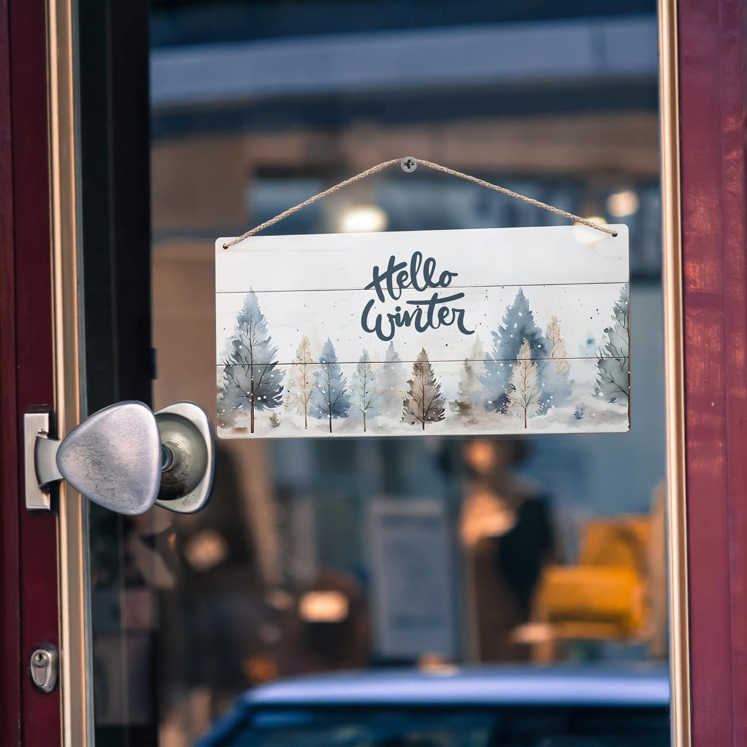 DUXMNAMG Hello Winter Welcome Hanging Wooden Signs 12x6, Pine Tree Decor, Winter Door Decorations, Winter Door Sign, Rustic Winter Christmas Snowflakes Trees Home Room Office Hanging Wall Decor