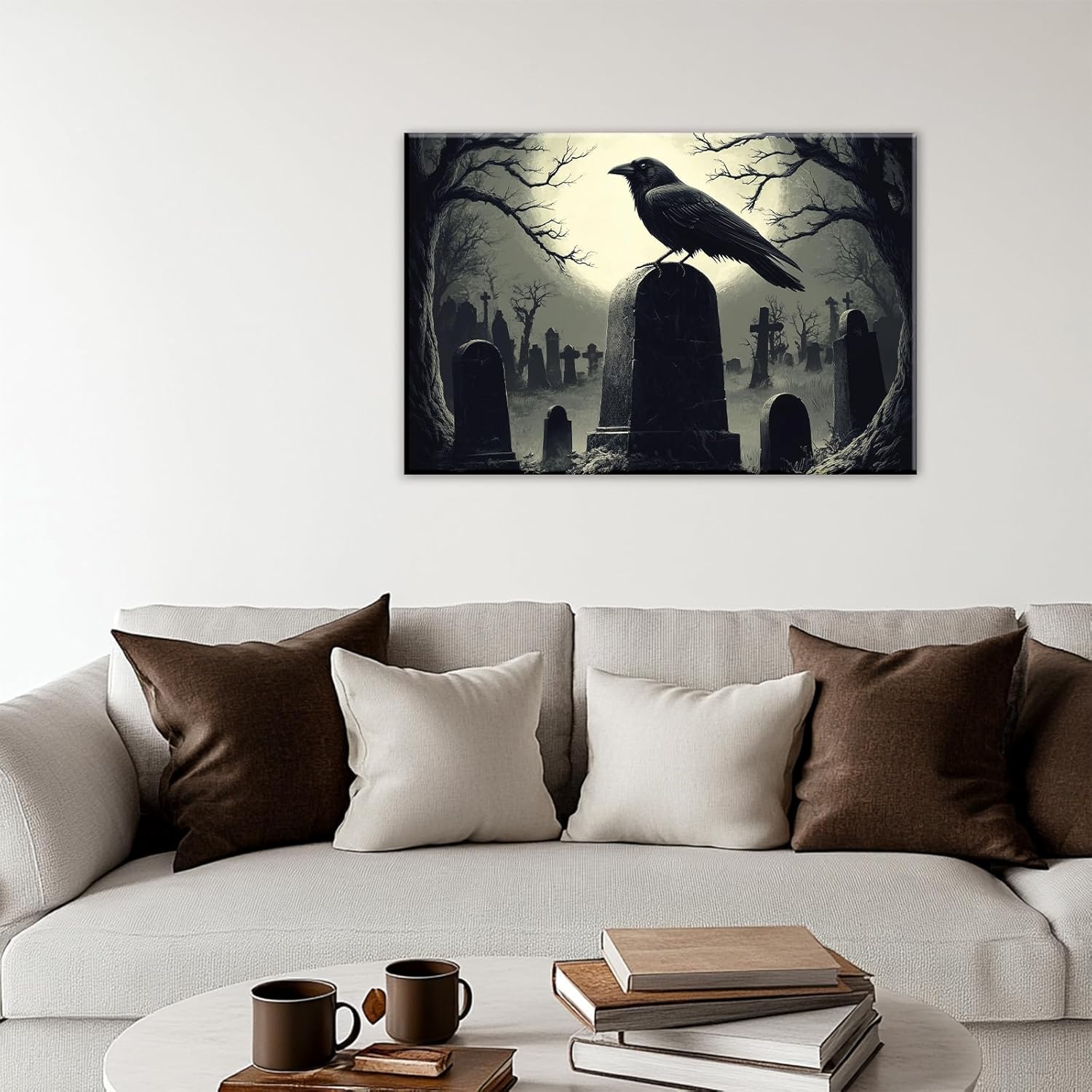 - High-Quality Print: Our black crow artwork is printed on premium quality paper, ensuring vibrant colors and sharp details. The horrid cemetery painting creates a haunting atmosphere, making it an ideal choice for both Halloween celebrations and year-round display