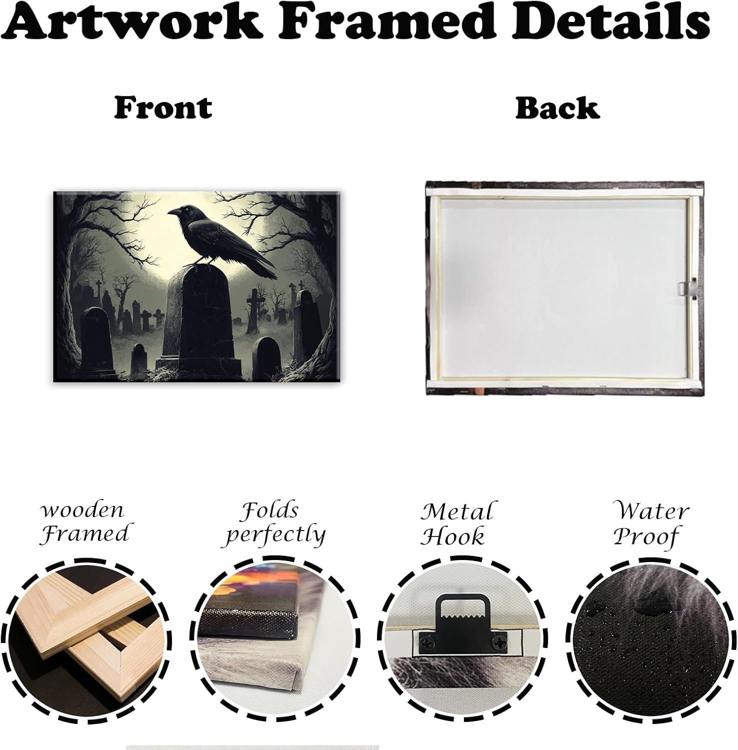 - High-Quality Print: Our black crow artwork is printed on premium quality paper, ensuring vibrant colors and sharp details. The horrid cemetery painting creates a haunting atmosphere, making it an ideal choice for both Halloween celebrations and year-round display