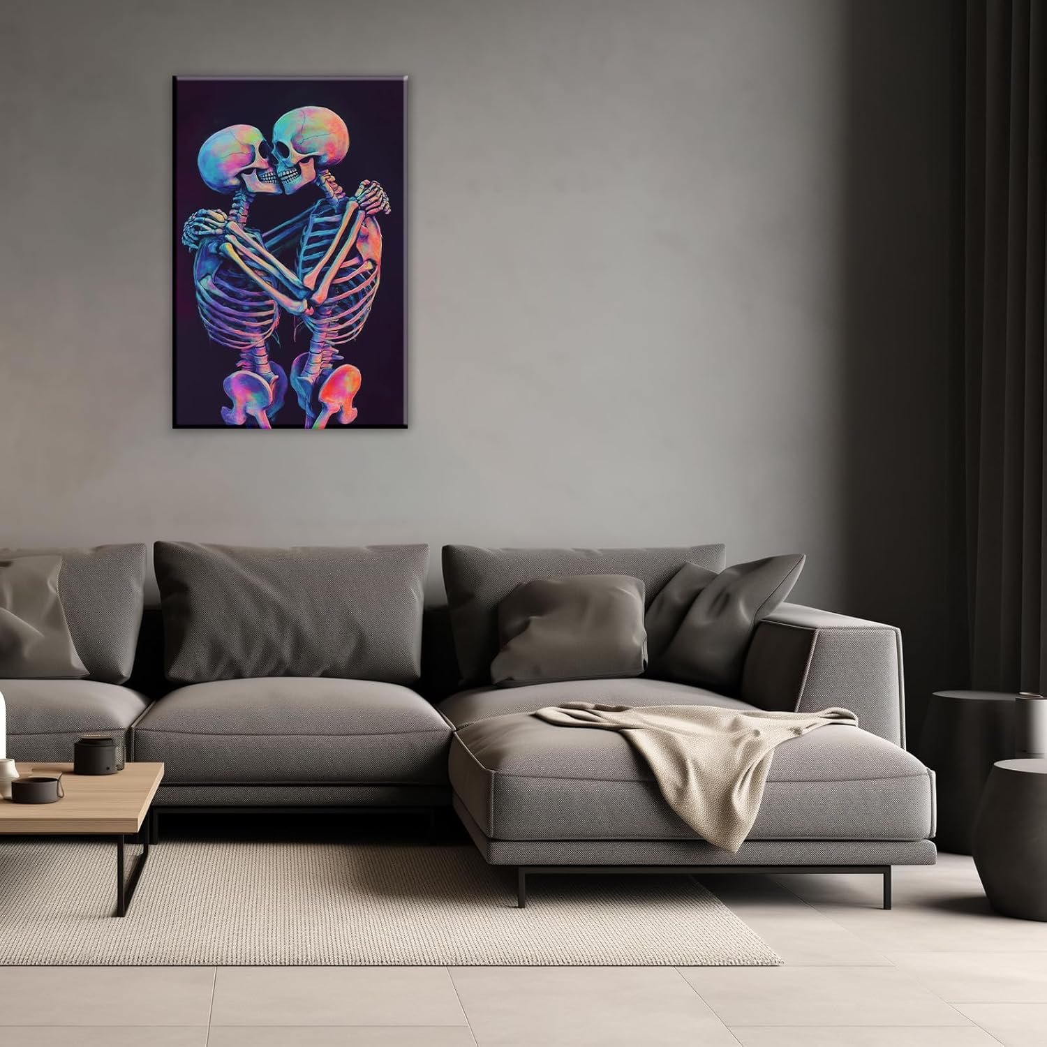 Skeleton Wall Art Kissing Skull Art Poster Skeleton Lover Picture Print On Canvas Abstract Horrible Theme Painting Framed Artwork Living Room Decor(Artwork-3,12"x18")