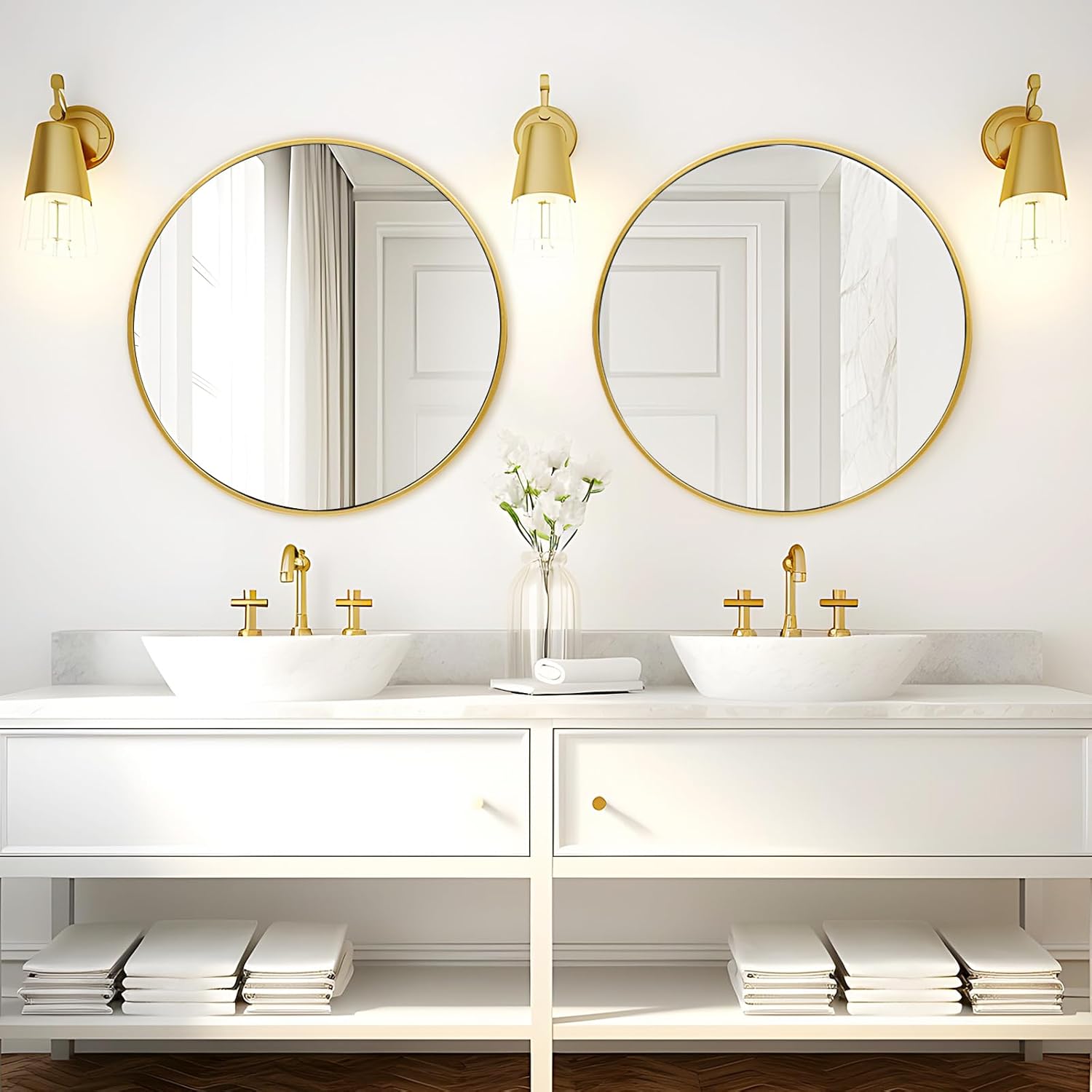 Fabuday Circle Gold Mirror for Wall 32 Inch - Large Bathroom Round Mirror with Matte Metal Frame, Entryway, Living Room, Hallyway, Bedroom Big Circular Mirrors